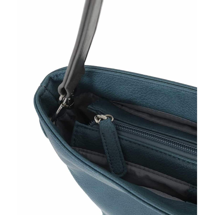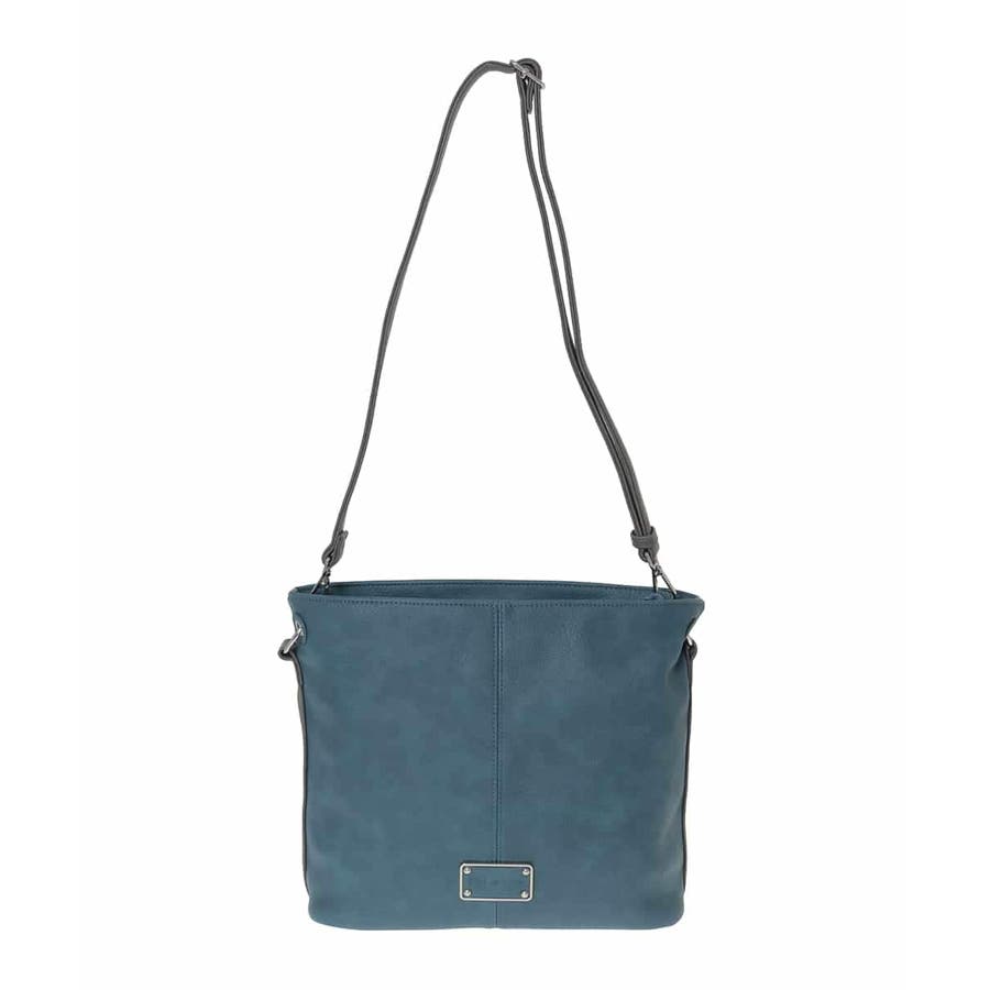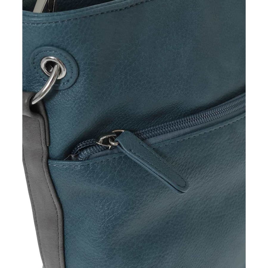 ステッチを効かせた合成皮革仕立てのカジュアルライクなショルダーバッグ。
