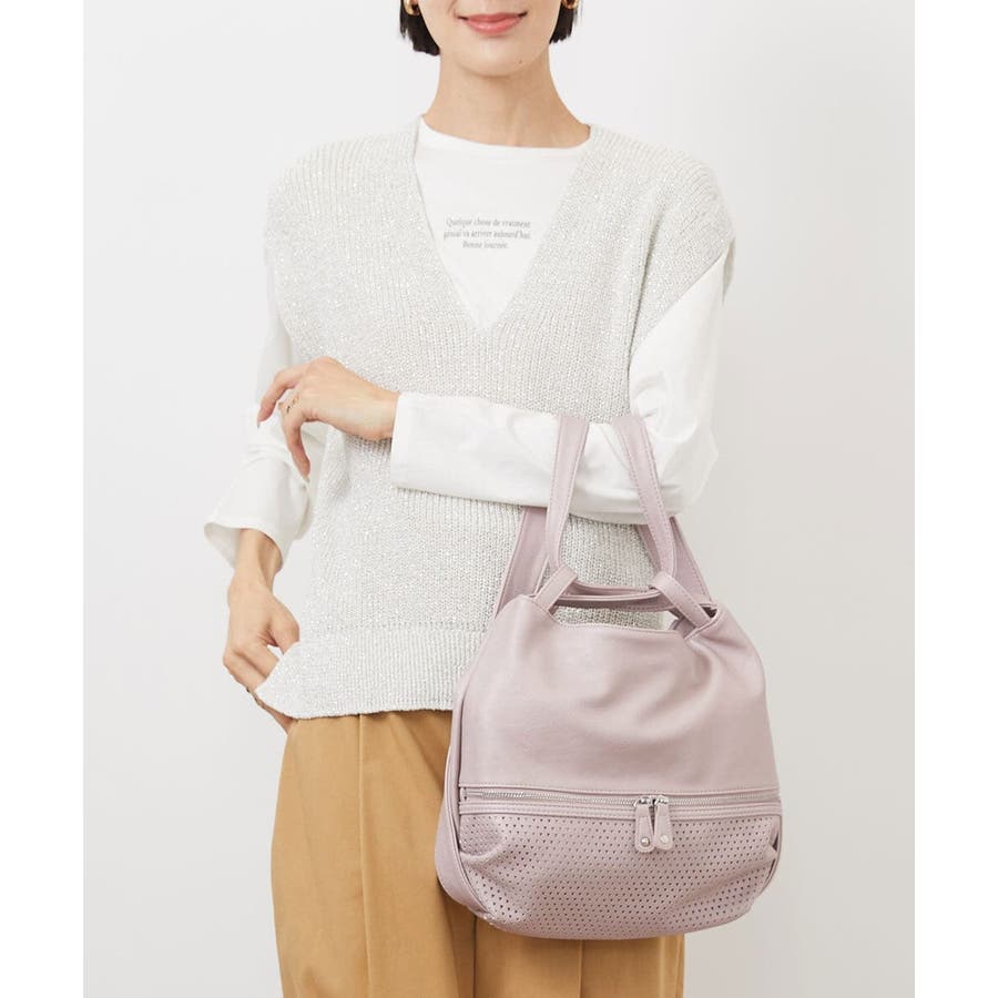 [2WAY]パンチングデザイン変形ミニトートバッグ