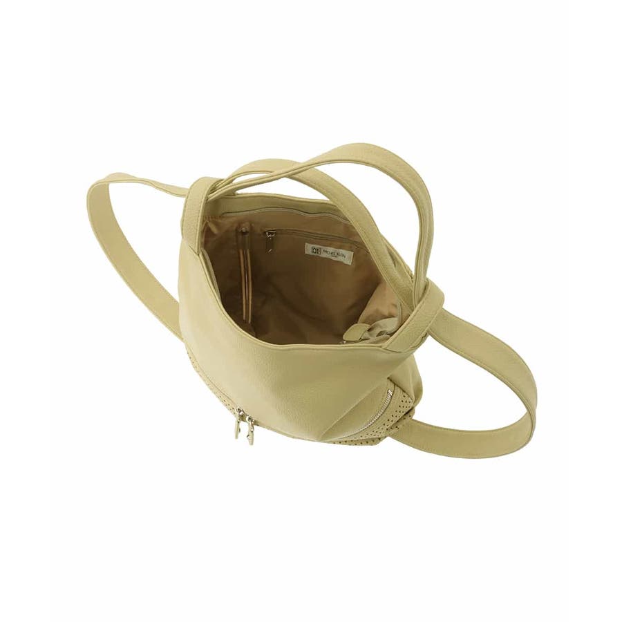 500mlペットボトルを縦横余裕を持って入れていただけるサイズ感をしており、ラウンドシルエットとパンチングデザインが人と被りにくく、特別感あるMKバッグの定番2WAYバッグです。