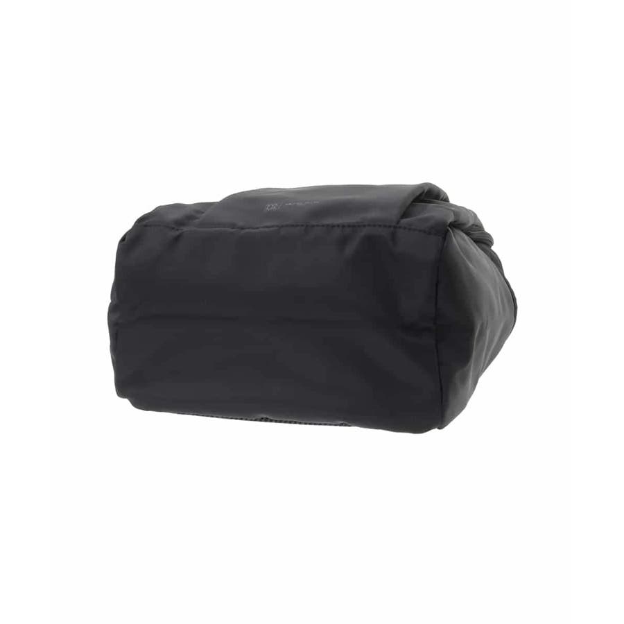 フロントのタックディテールが生み出す立体フォルムと、さりげなく加えたブランドロゴが魅力のポイントです。開口部はラウンドダブルファスナー仕様で中のものが取り出しやすく、細かい仕切りポケット付きでコンパクトながらも収納力も優秀。