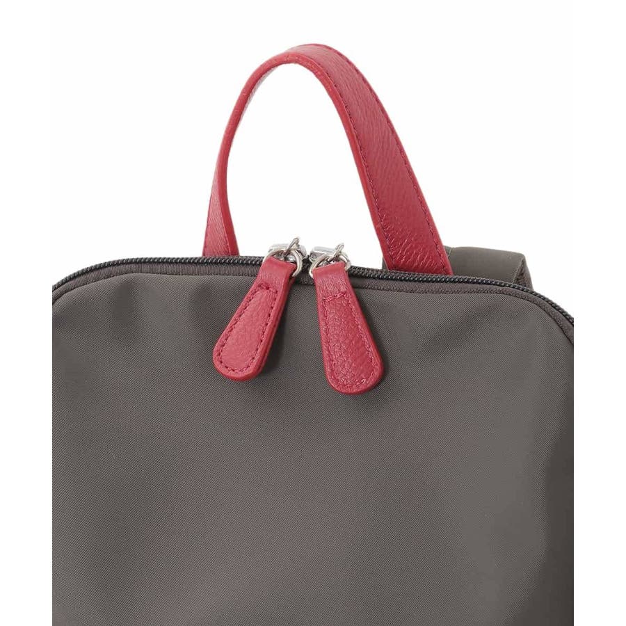 ナイロン混の撥水加工素材をベースに、レザーポイントで上品なアクセントをプラス。カジュアルなスタイリングはもちろん、通勤スタイルにも合わせて頂ける汎用性の高いアイテムです。