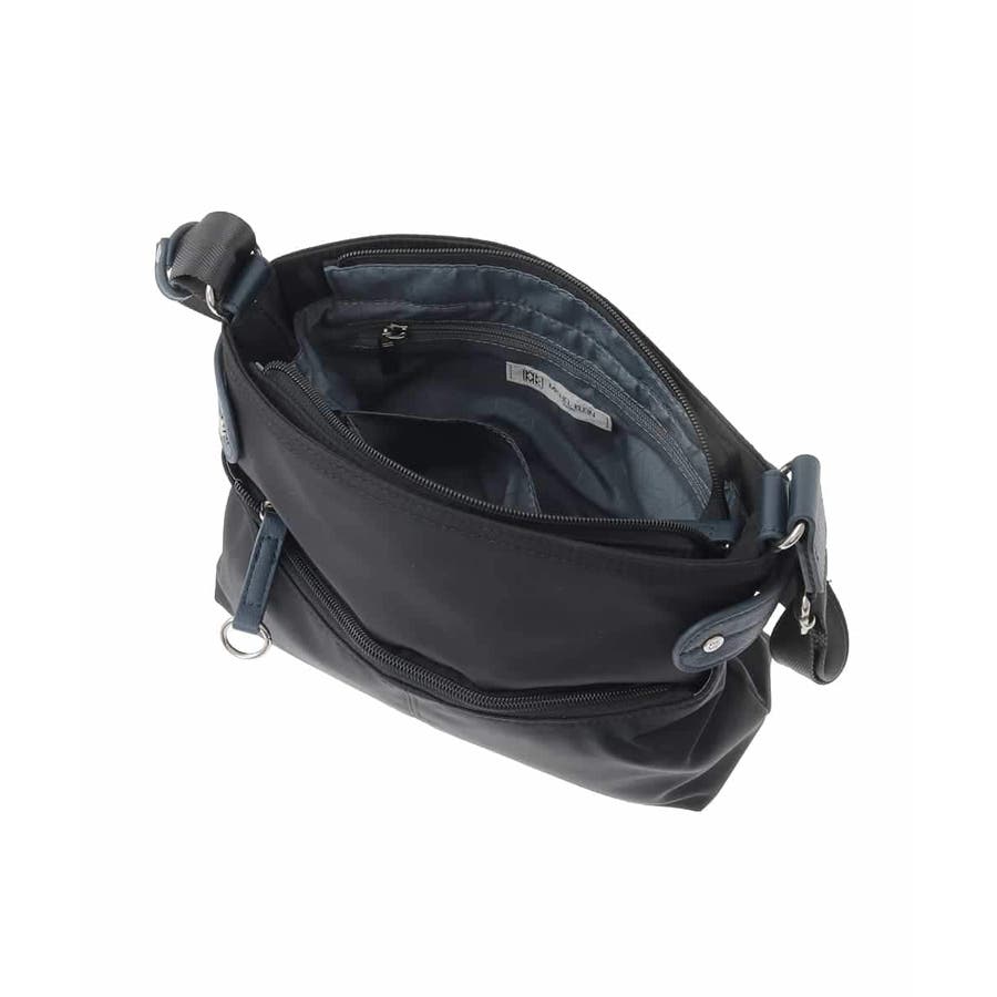 ナイロン混生地にレザーのパイピングを加えたMKバッグの定番ショルダーバッグです。生地には撥水加工を施しており、外出先で突然雨が降っても安心してお使いできるイージーケア仕様が魅力的。