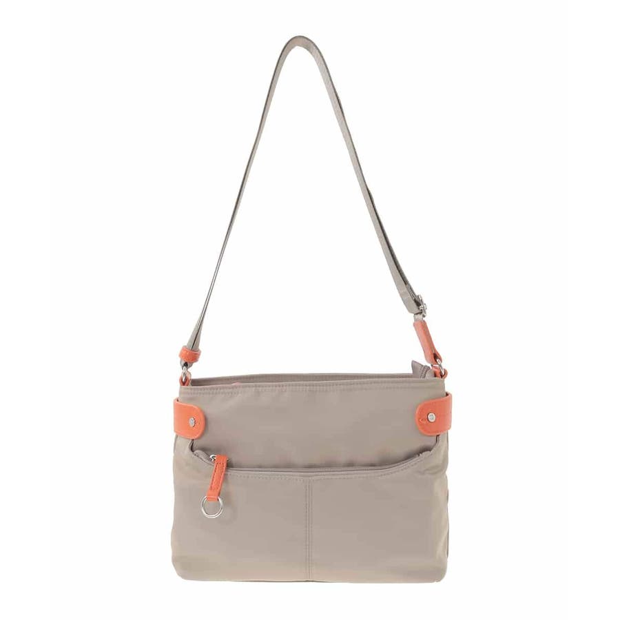 コンパクトなデザインですがポケット収納が充実しており、リップや目薬といった小さめのお荷物から、文庫本まで幅広く入れていただけます。フロントやバックの外ポケットにもファスナーがついているので、サっと取り出したいものを入れても落とす心配がない点が◎
