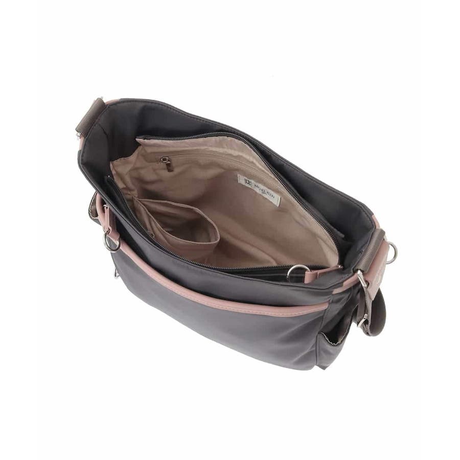 ナイロン混生地にレザーのパイピングを加えたMKバッグの定番ショルダーバッグです。生地には撥水加工を施しており、外出先で突然雨が降っても安心してお使いできるイージーケア仕様が魅力的。
