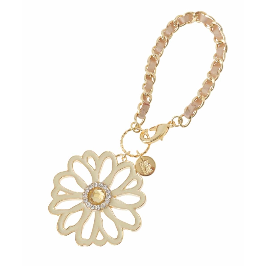 煌めくビジューを散りばめたBIGフラワーモチーフが目を惹くバッグチャームです。メタルチェーンにサテンリボンを組み合わせた手の込んだディテールにもご注目。