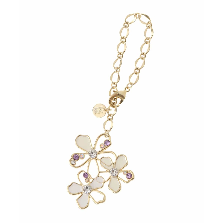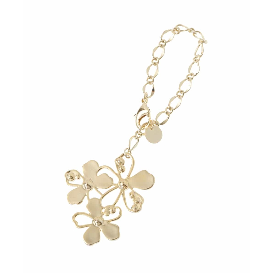 アクセントにストーンがきらめくフラワーモチーフチャーム。