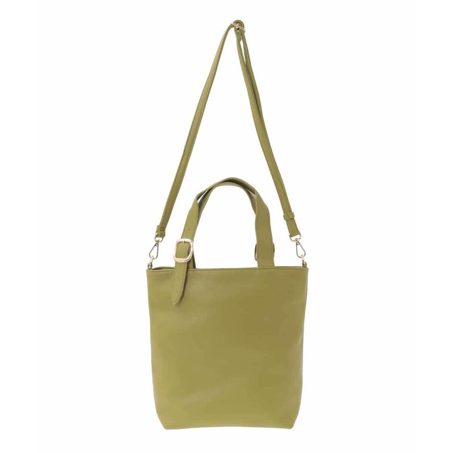 35番色はニュアンス感のある大人のグリーンカラーで、やや黄みがかっておりコーデに馴染んでくれるお色合いになっています。カラーバッグに挑戦してみたいという方に、ぜひおすすめしたい一色です。