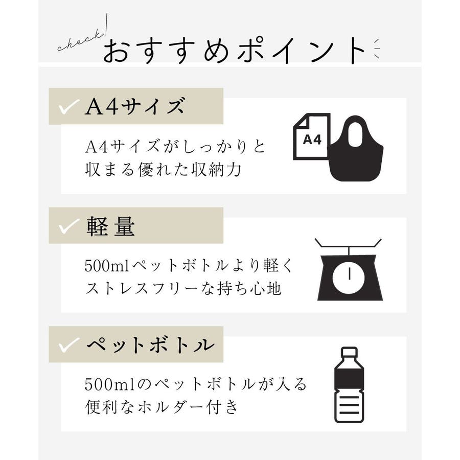 大きめのサイド収納付きで使いやすく、A4サイズ対応のしっかりとした収納力も魅力的。コーディネートに合わせやすいカラーリングで、オン・オフ問わずマルチにお使いいただけます。