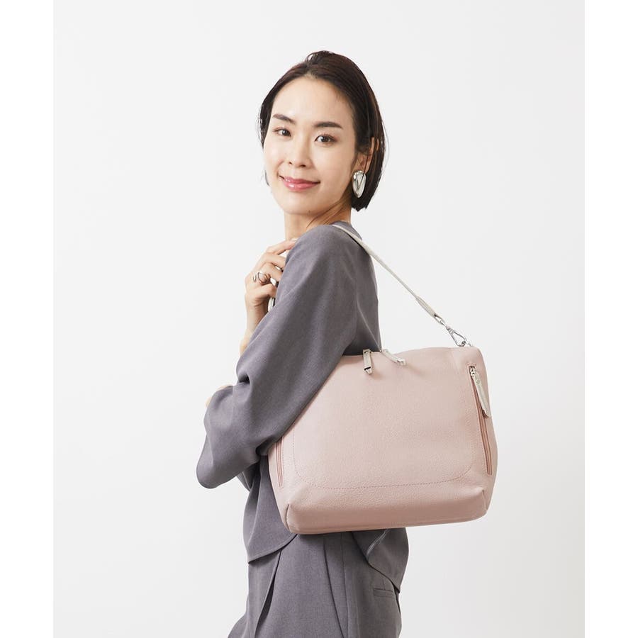 程よいマチ付きのスクエアフォルムに、コーディネートに馴染むカラーリングも魅力のポイント。しっかりとした収納力と便利なファスナーポケット付きで、普段のお出かけからビジネスシーンまで幅広く活躍してくれます。付け替え可能なベルト付きで長さのアレンジも出来る便利な2WAYデザイン。