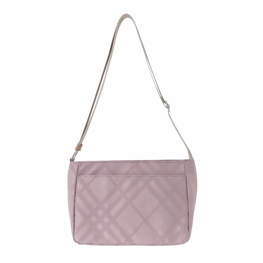 光の表情を楽しめる、チェック柄のコンパクトショルダーバッグです。