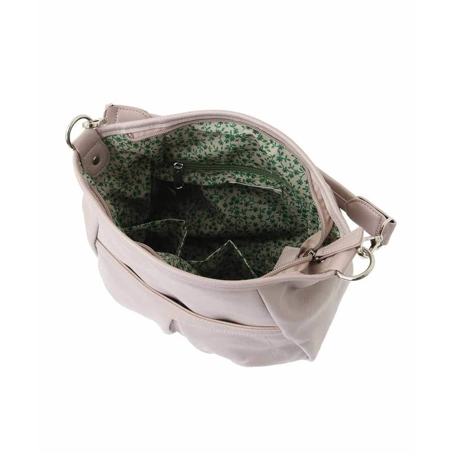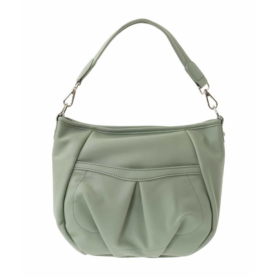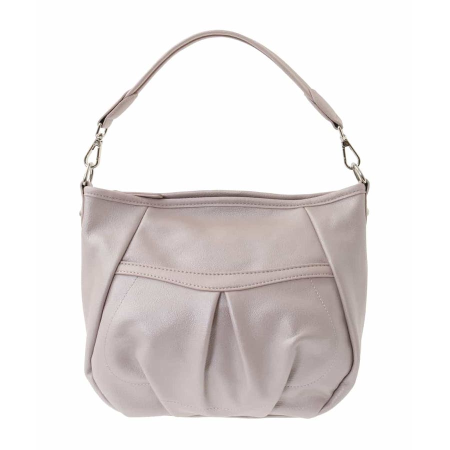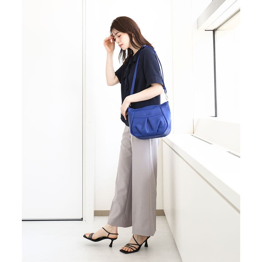 タックギャザーで丸みを出した、コンパクトなショルダーバッグ。滑らかな質感のフェイクレザーを使用した品のある雰囲気も魅力的です。