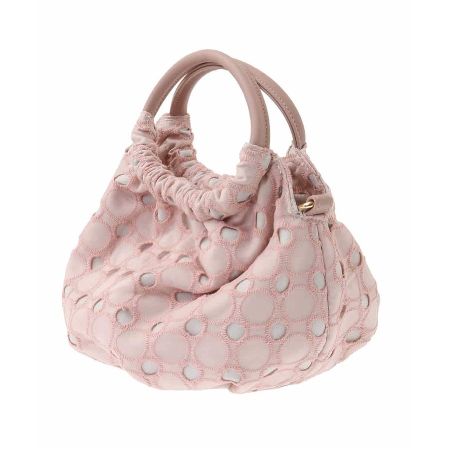 ころんとした丸いフォルムが大人かわいいトートバッグです。サークル柄レース生地をジョイントし、ナチュラルで女性らしい雰囲気に仕上げました。
