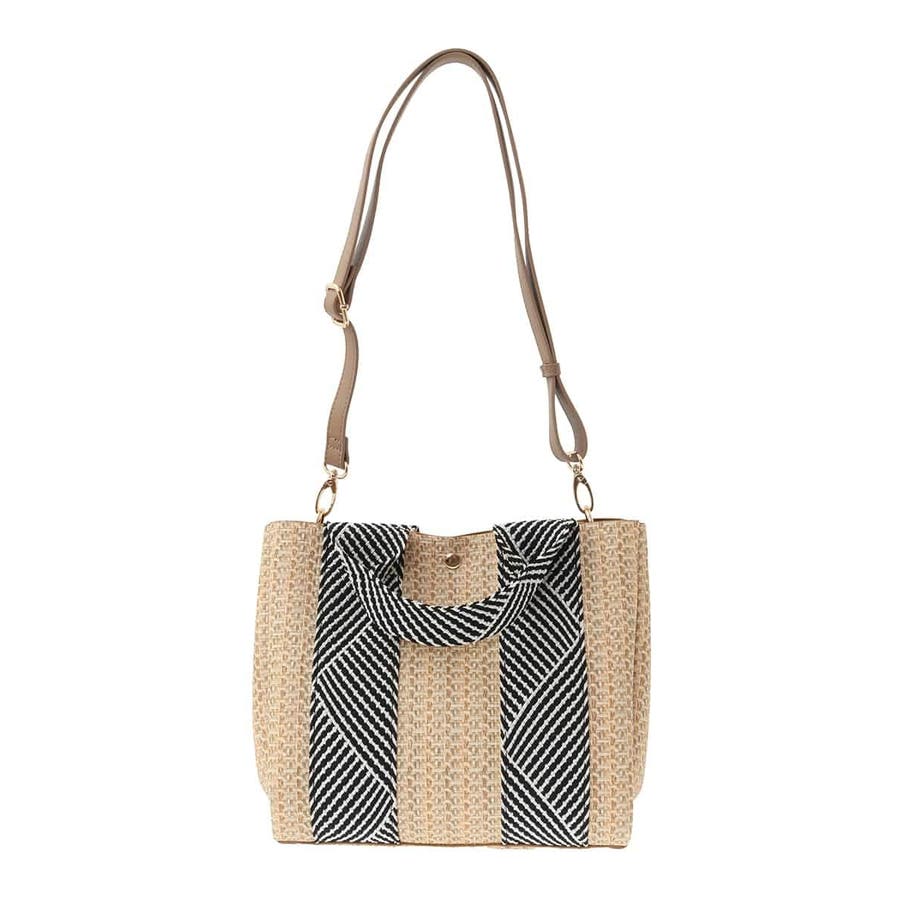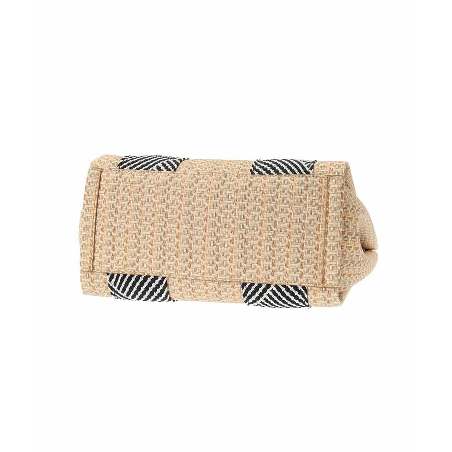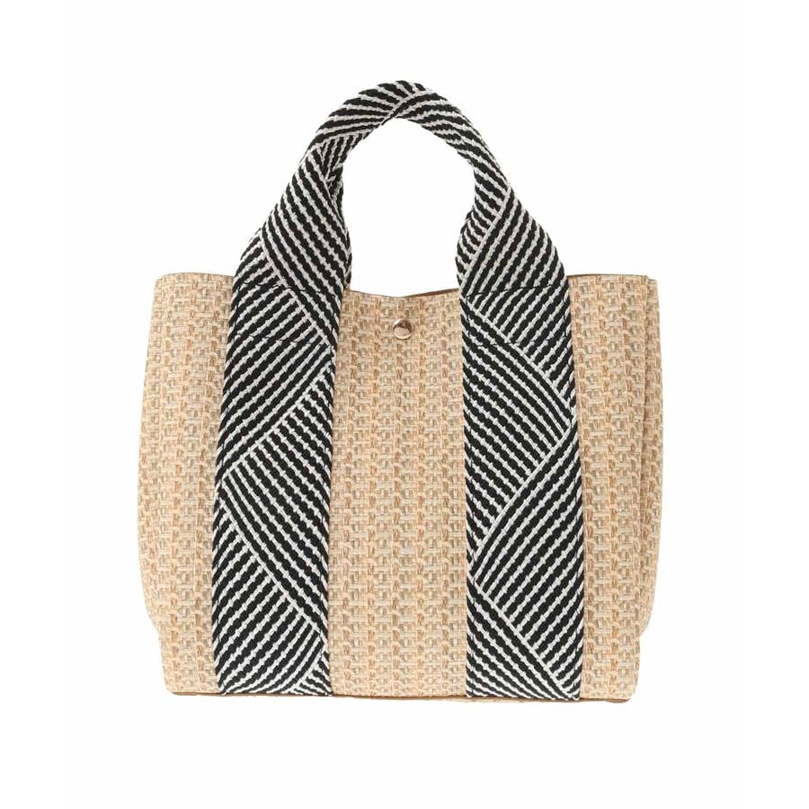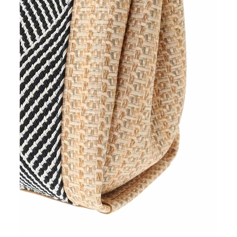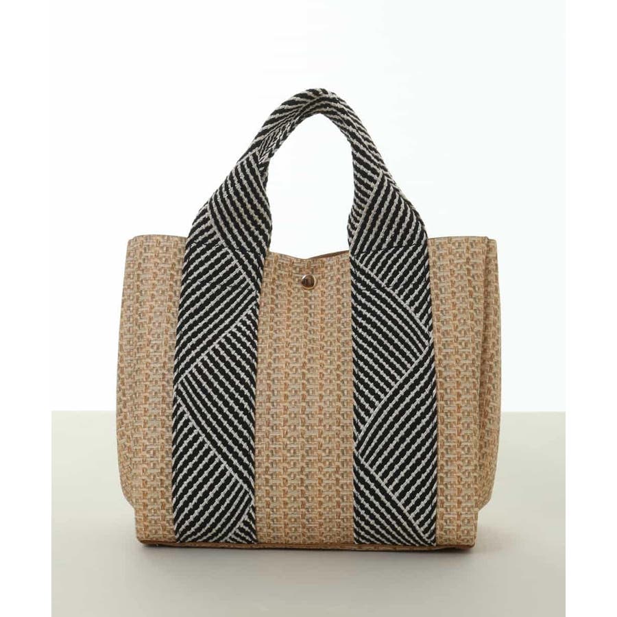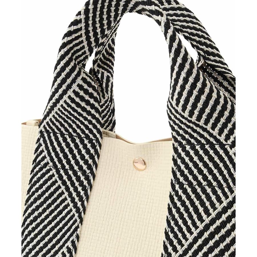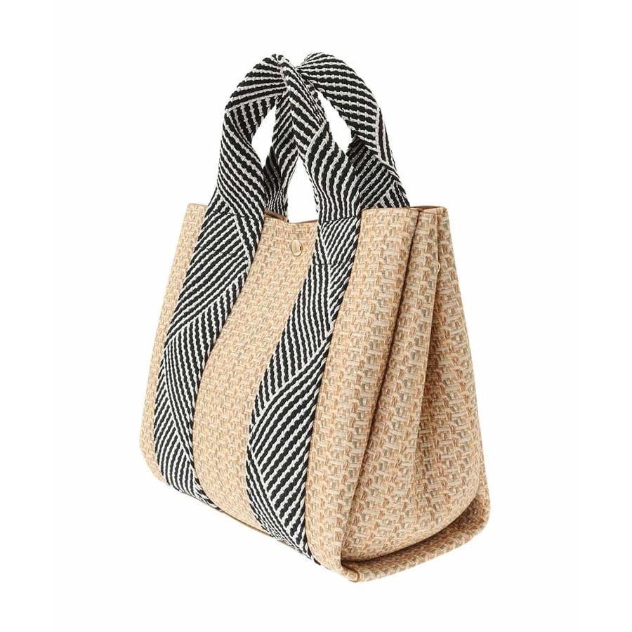かごバッグ風に見える、涼し気な合成皮革バッグです。かご素材「風」のため、編み目が服に引っかかる心配もなく、突然の雨でもお荷物が水濡れしにくい点が魅力的なひと品。