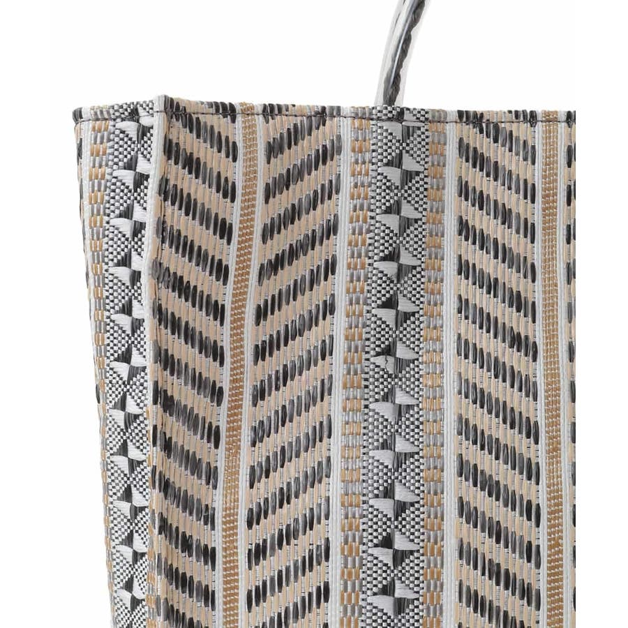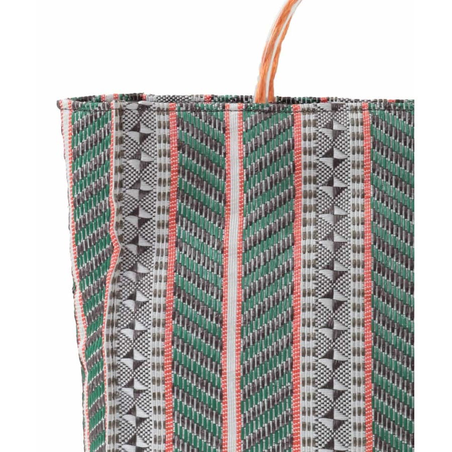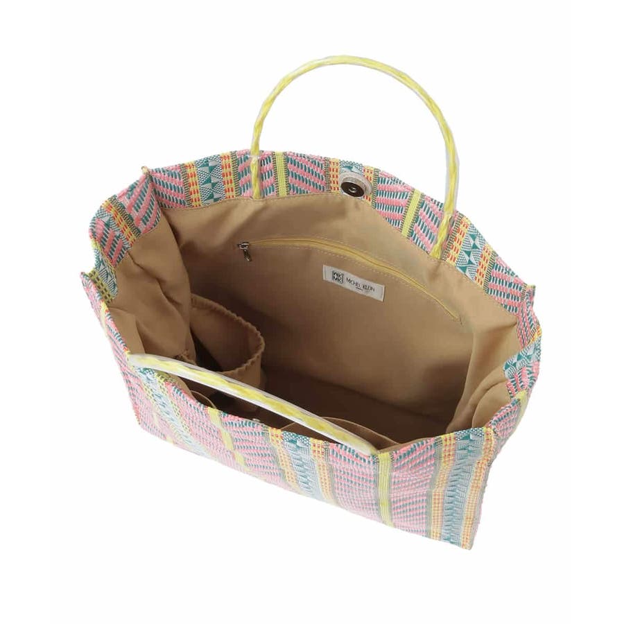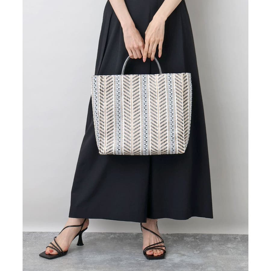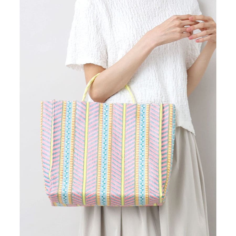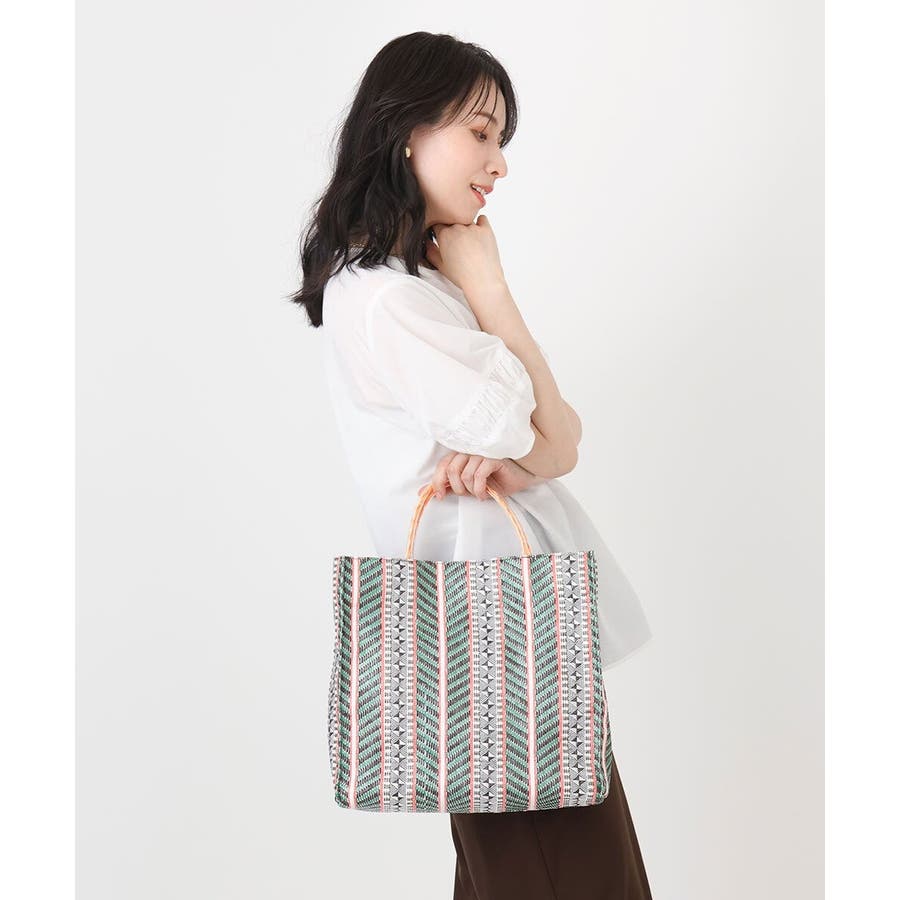 複雑な色使いの織柄が目を惹き、夏の装いを盛り上げてくれるトートバッグです。