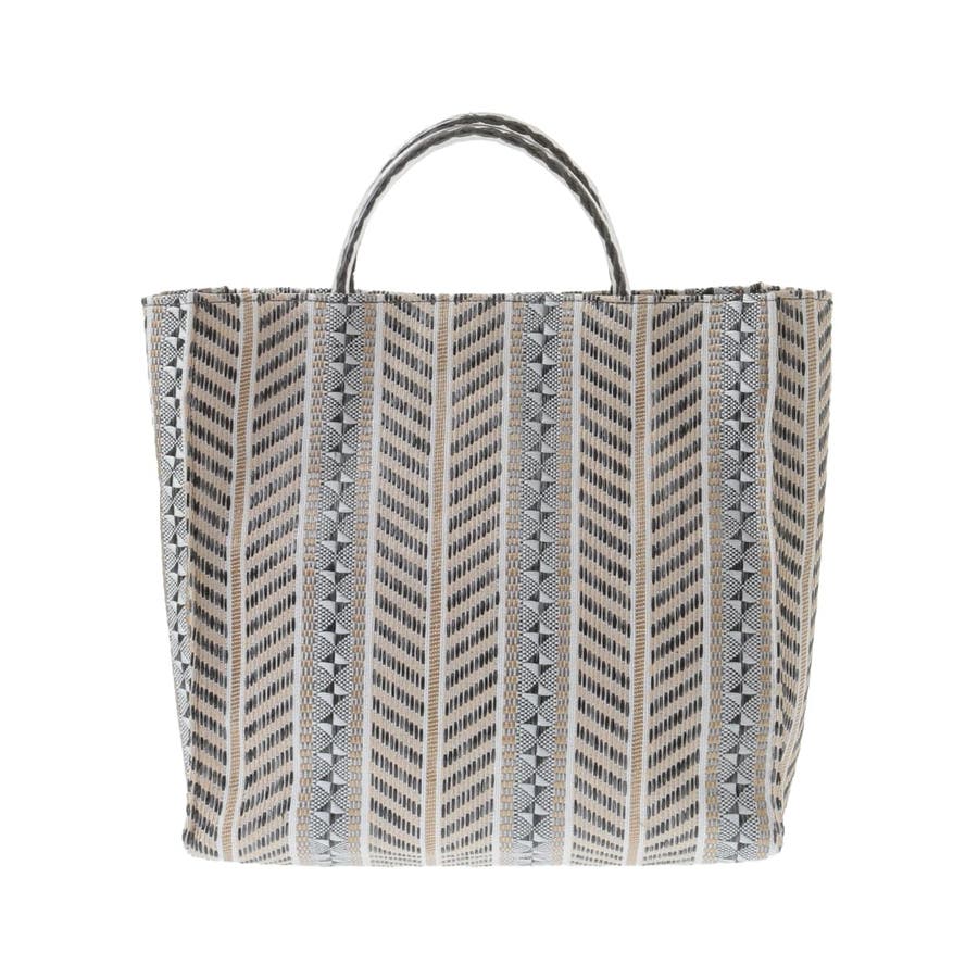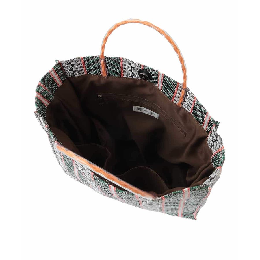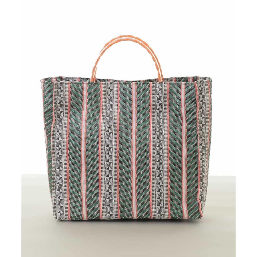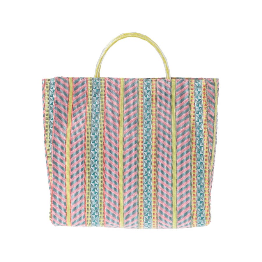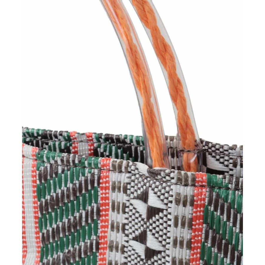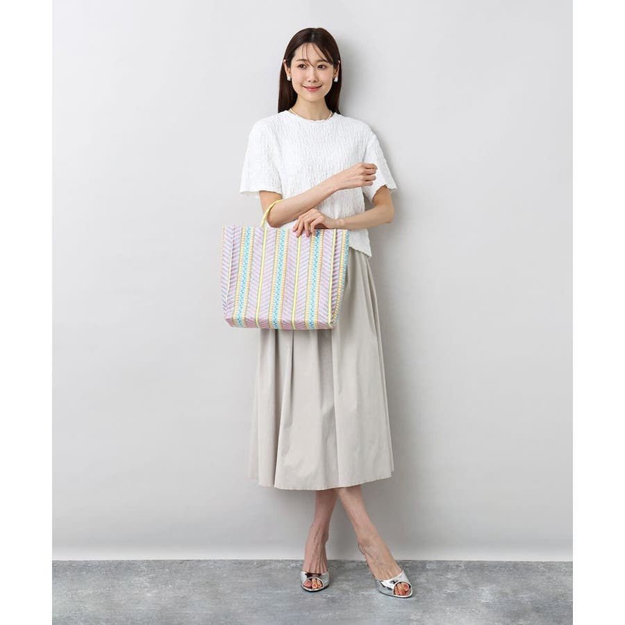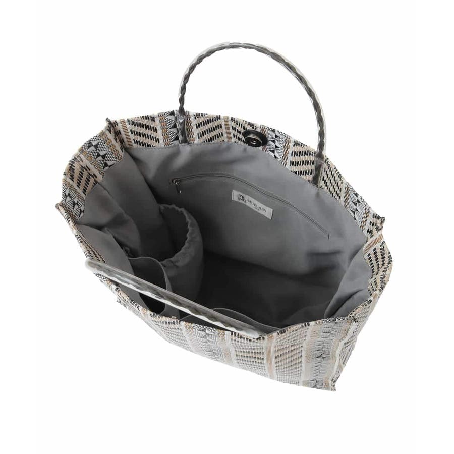 複雑な色使いの織柄が目を惹き、夏の装いを盛り上げてくれるトートバッグです。