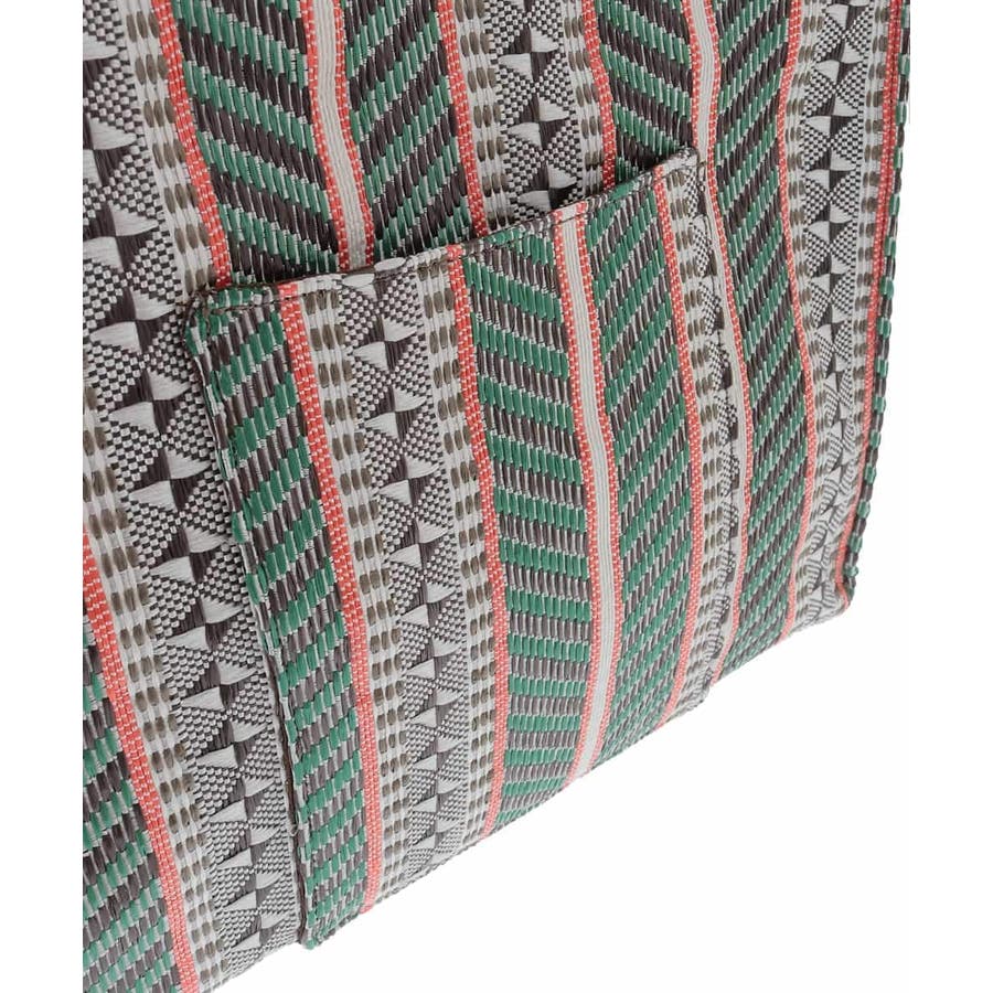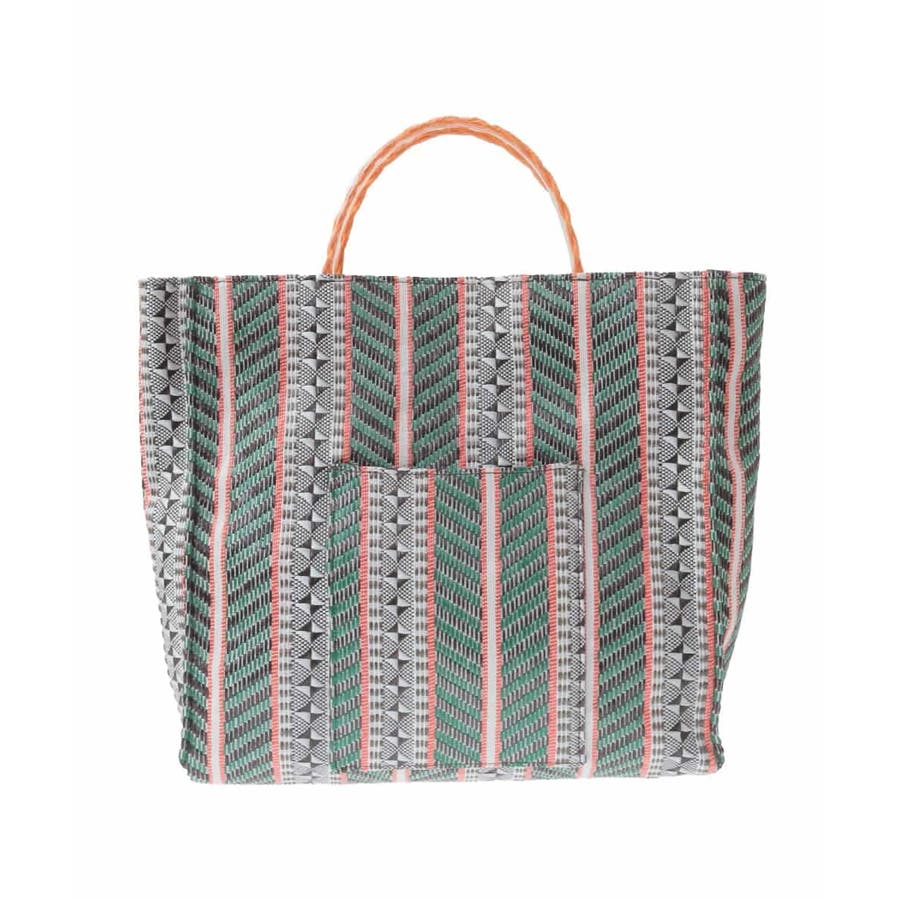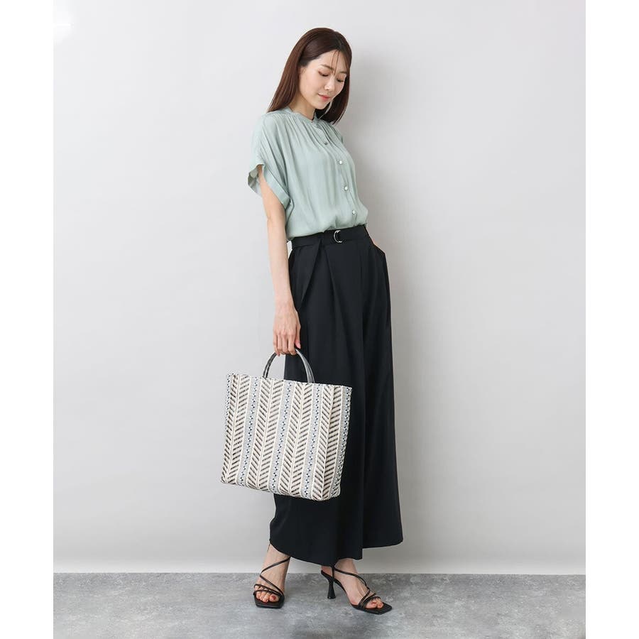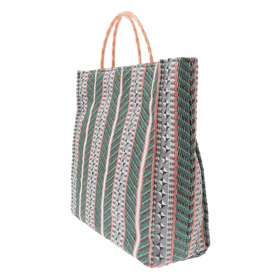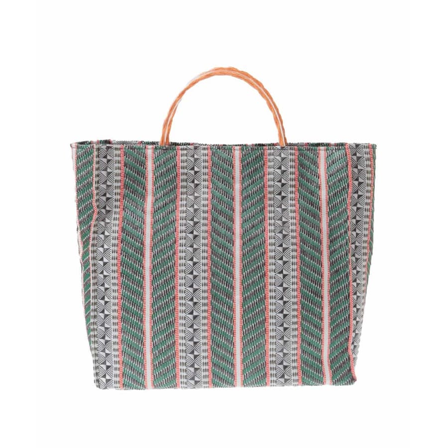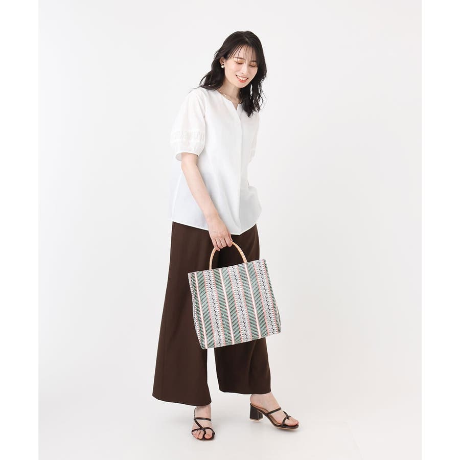 複雑な色使いの織柄が目を惹き、夏の装いを盛り上げてくれるトートバッグです。