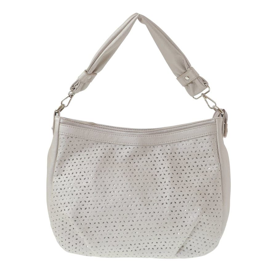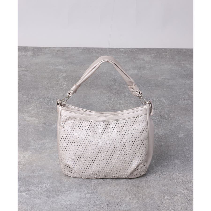 お花のモチーフにも見えるパンチングデザインがポイントのデザインバッグ。