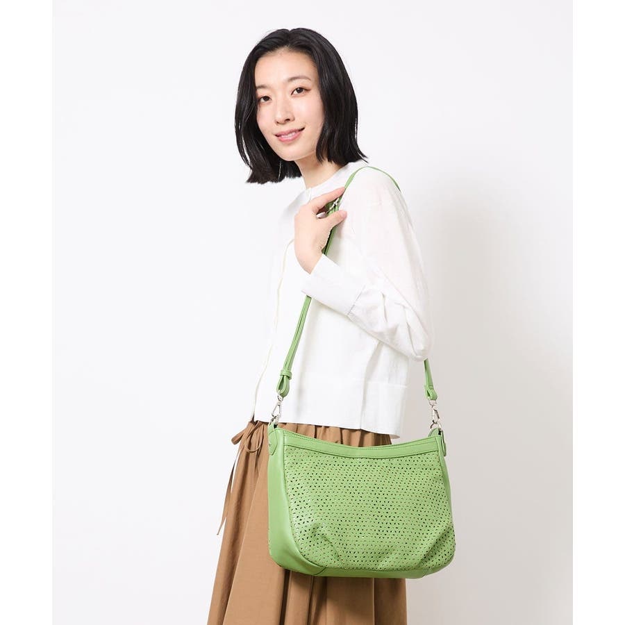 【グリーン】[2WAY]パンチングラメデザインバッグ