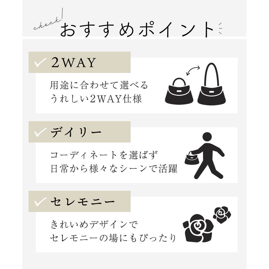 ハンドバッグとしてはもちろん、付属のショルダーを取り付けてもお使いいただける2WAY仕様なのも嬉しいポイント。