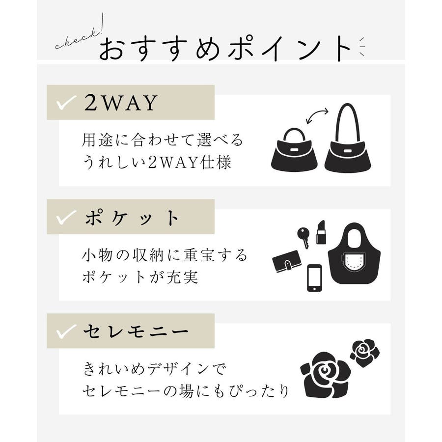 入卒式や結婚式といったフォーマルなシーンから、普段のお出かけまでお持ちいただけるひと品です。