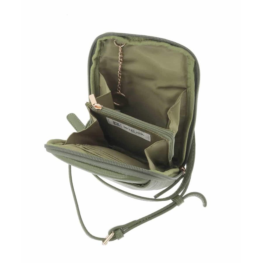 フロントのポケットはスマートフォンを入れていただけるので、簡易的なスマホショルダーとしてお使いいただくことも◎