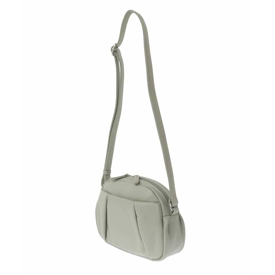 コロンと丸みのあるコンパクトなフォルムが品のあるデザイン。フロントポケットにはタックを寄せてふっくらと立体感をプラスしました。