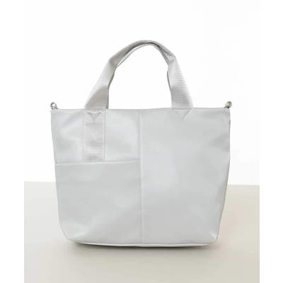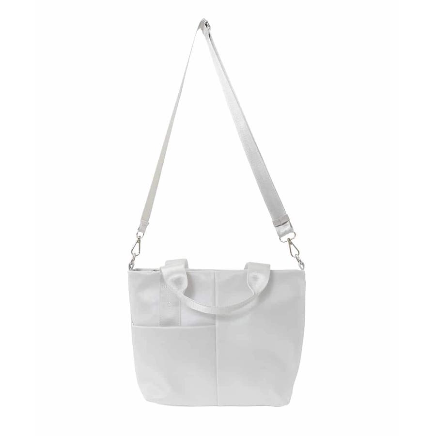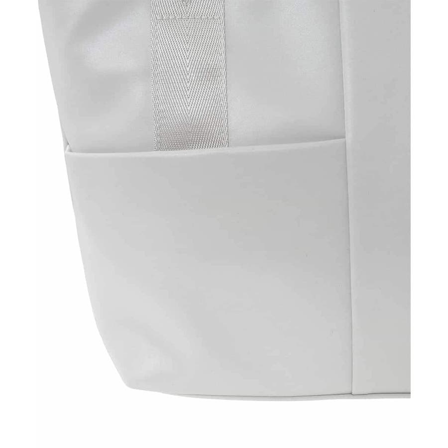 艶感のある合成皮革生地で仕上げたスタイリッシュなトートバッグ。シャープなフォルムながらも、三層構造で収納力にも優れた使い勝手の良いお作りです。ハンドルには異素材の光沢テープを合わせてカジュアルさをプラス。ショルダーベルト付きでシーンを選ばず、オン・オフ問わず合わせて頂けるおすすめのアイテムです。