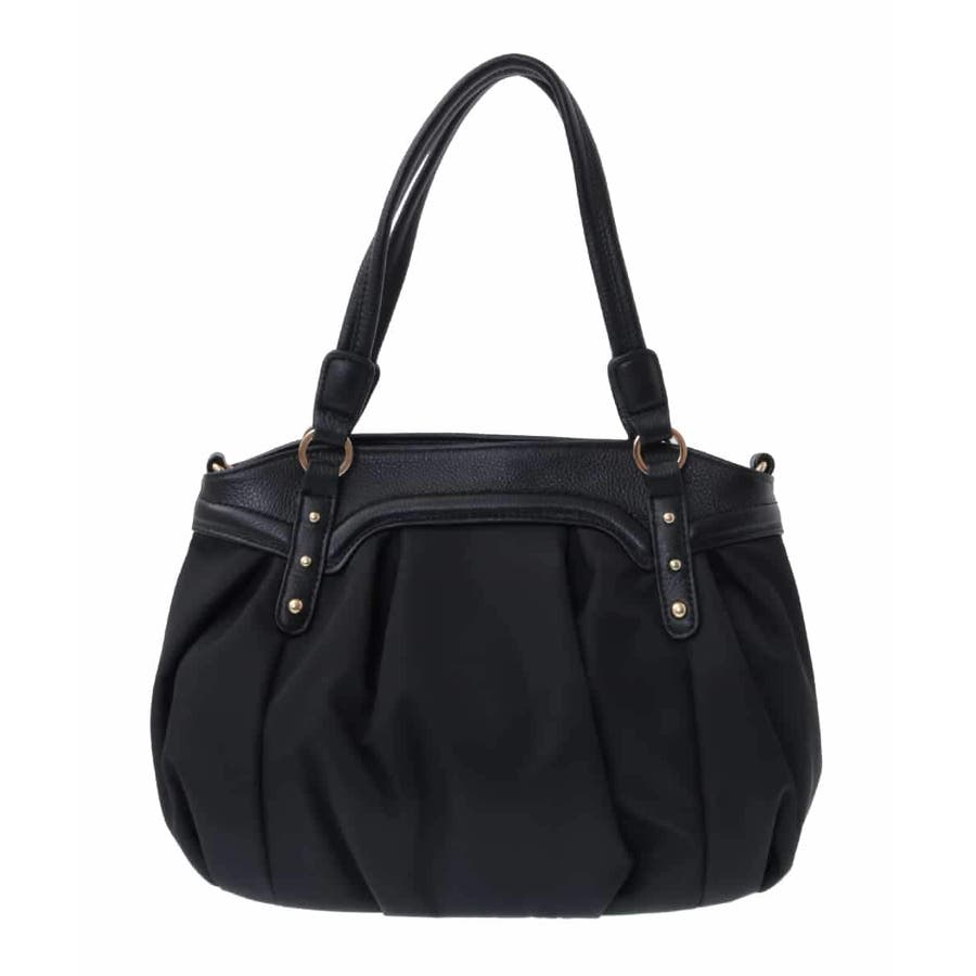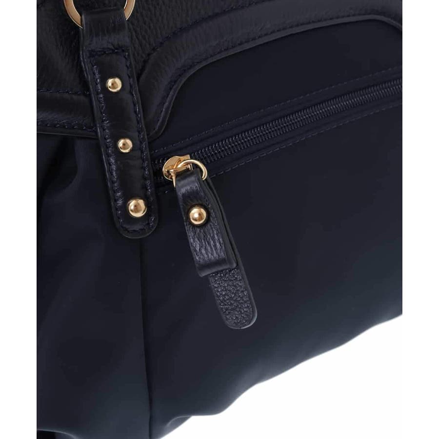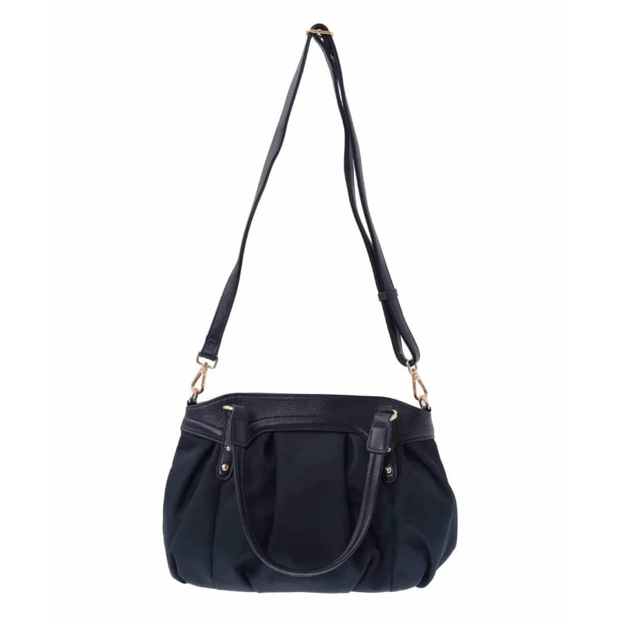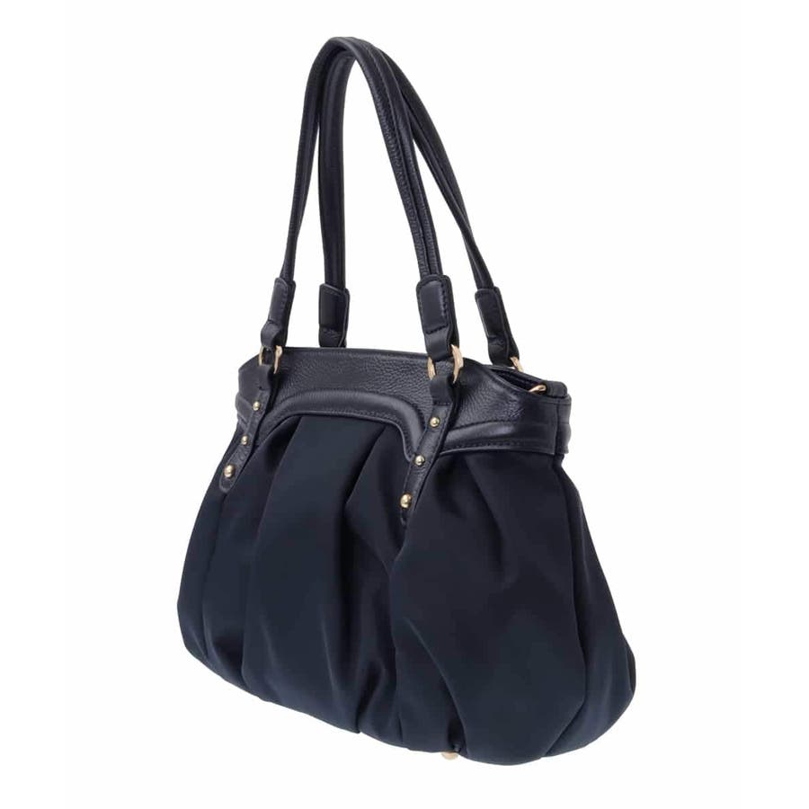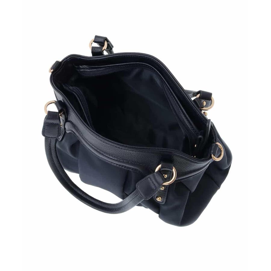 撥水加工を施した、ナイロンベースの生地に上品なカウレザーを異素材ドッキングしたミニトートバッグ。