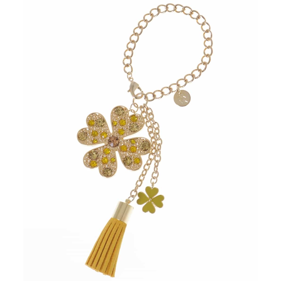 ビジューの輝く大ぶりのクローバーモチーフがフェミニンな雰囲気抜群のバッグチャーム。