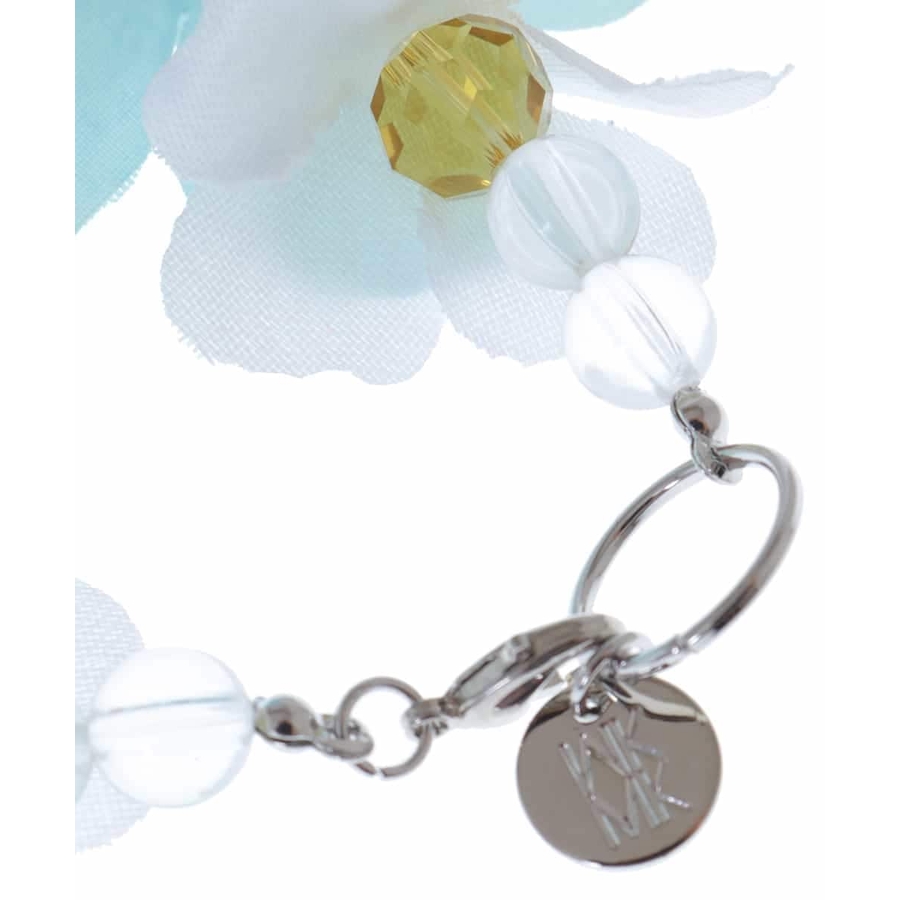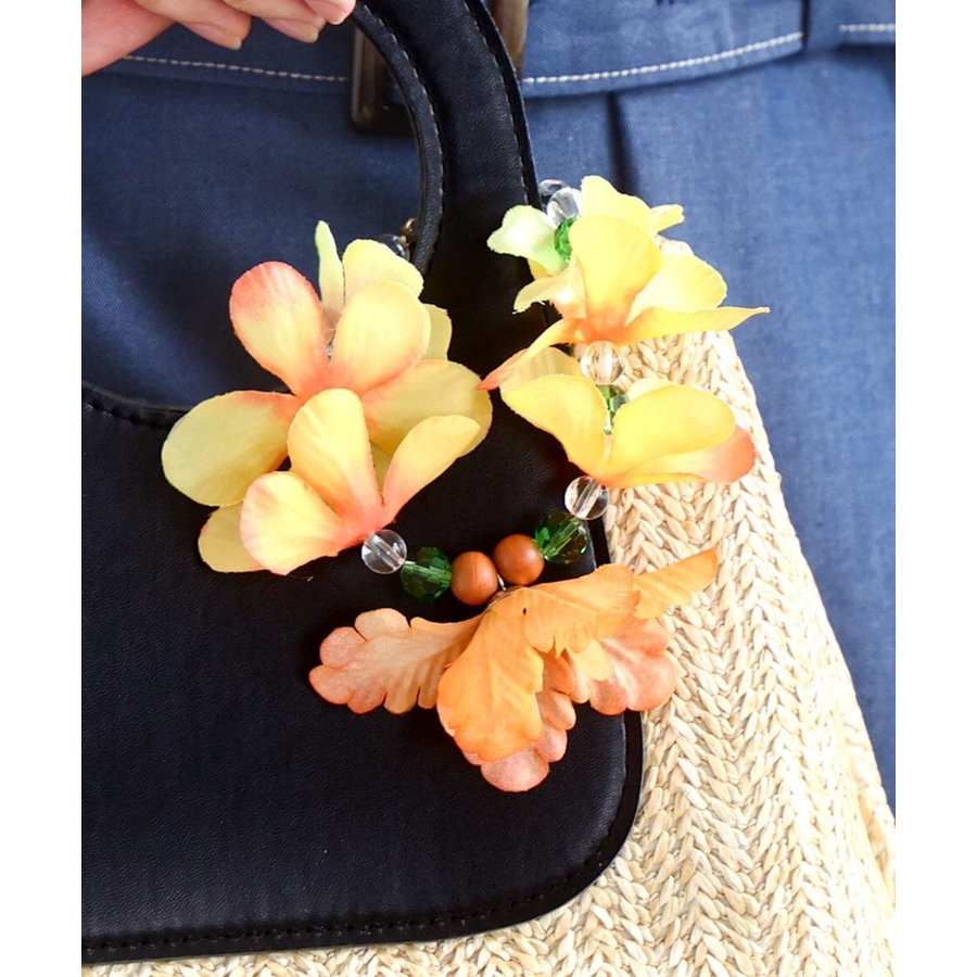 夏らしい鮮やかなフラワーコサージュと涼し気なビーズをミックスしたバッグチャーム。シンプルなバッグに付けるだけで、ぱっと明るくシーズナルな雰囲気にしてくれます。また、お財布やポーチに付けて可愛らしい持ち手としてもおすすめ。
