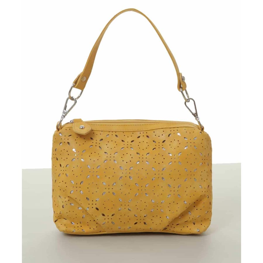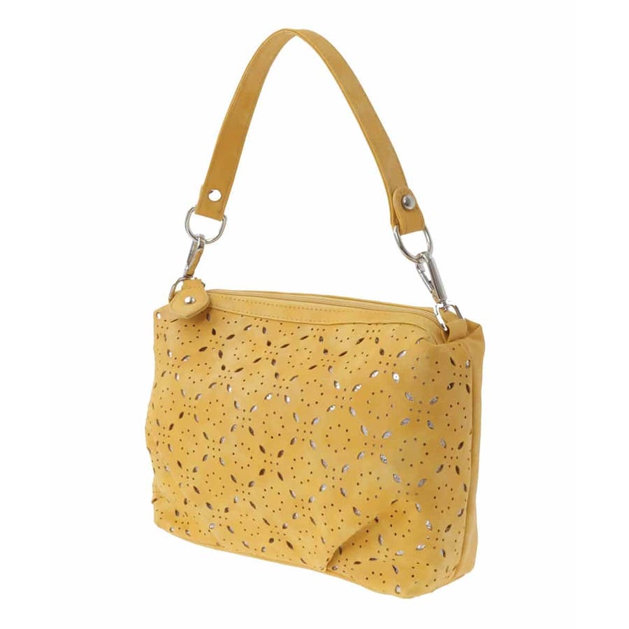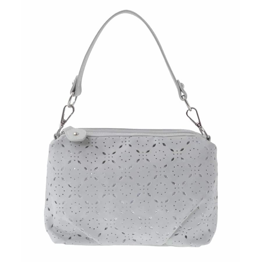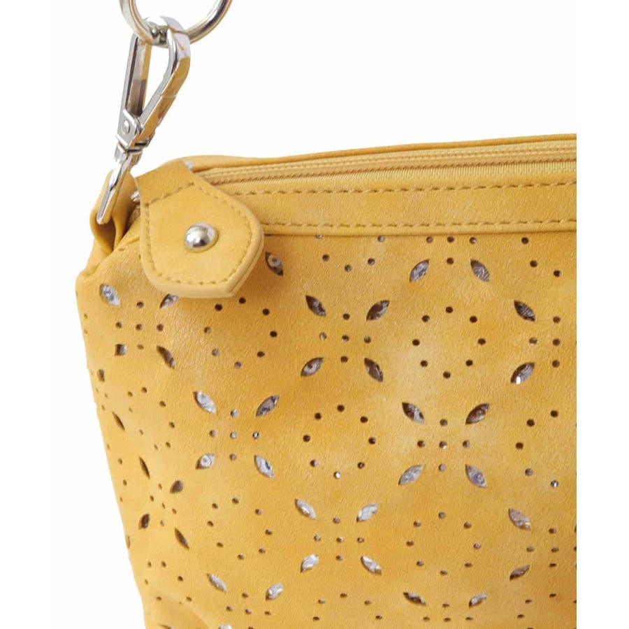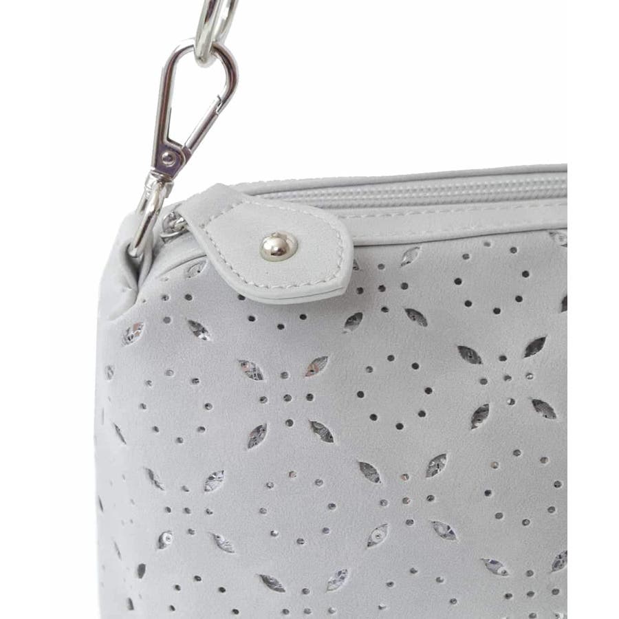 スパンコールがきらりと覗くパンチングデザインが魅力的なミニショルダーバッグです。