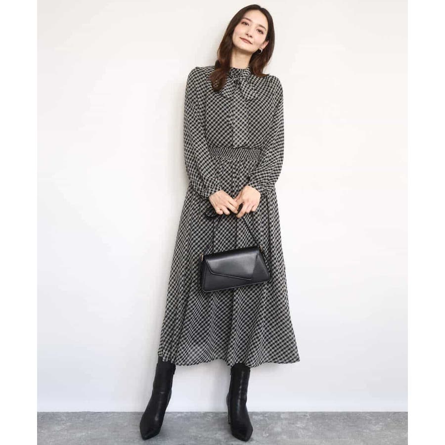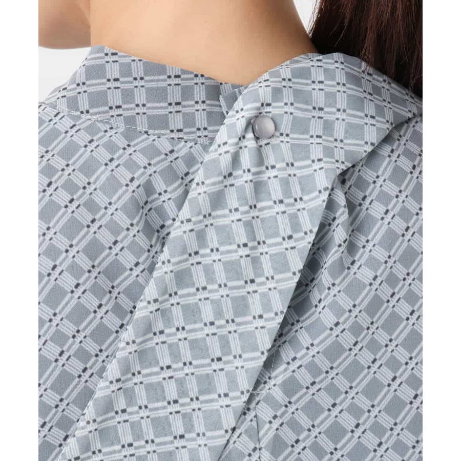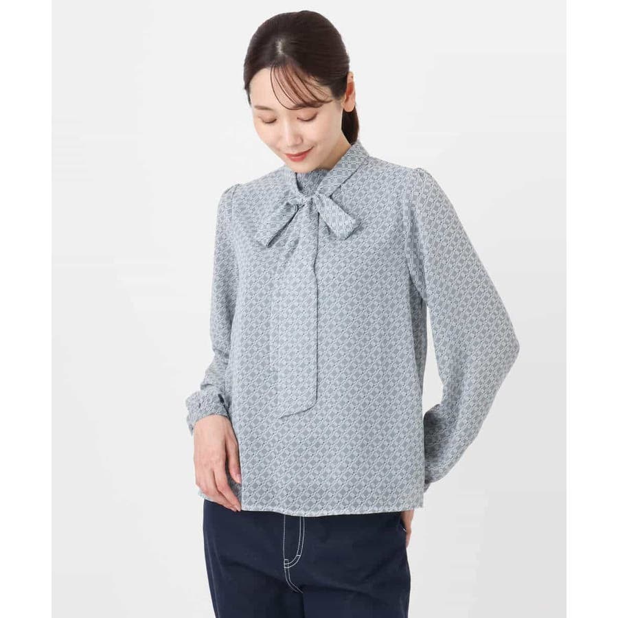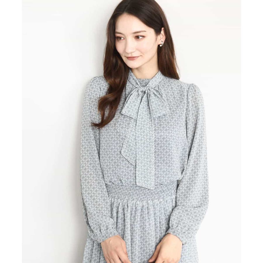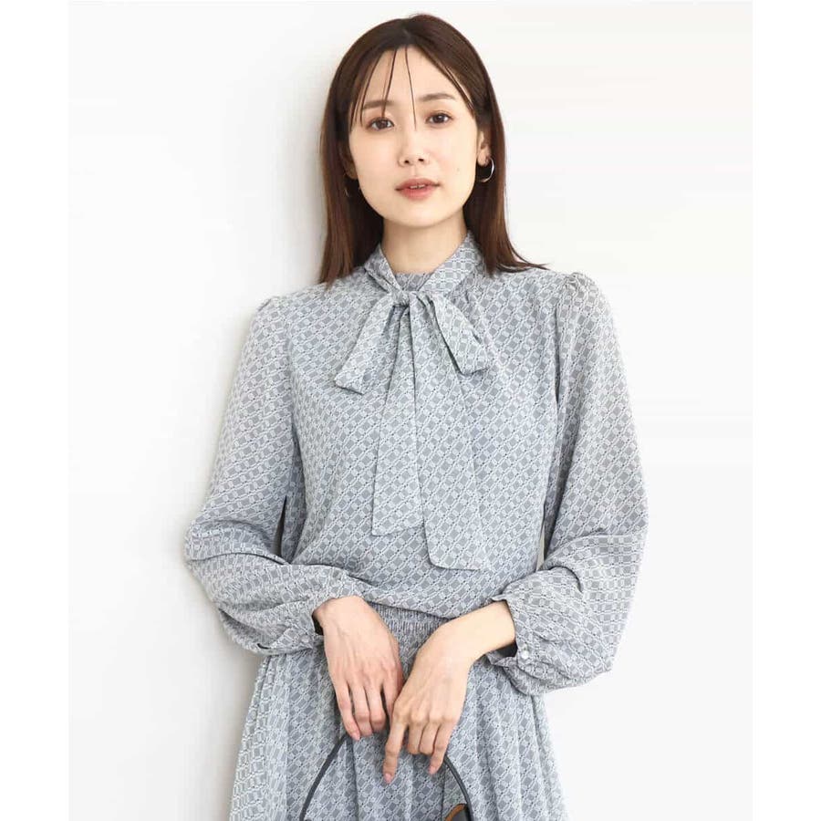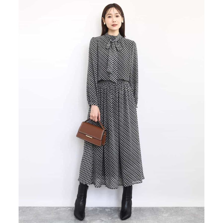 上品な印象のチェック柄のシフォンブラウス。取り外し可能のボウタイ付きで2wayで着こなし可能です。タイを外すと低めのスタンドネックで首元がクラシカルな印象に。