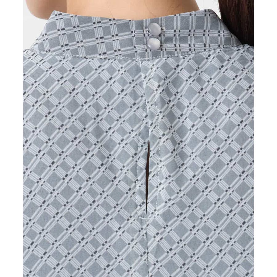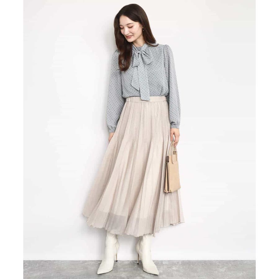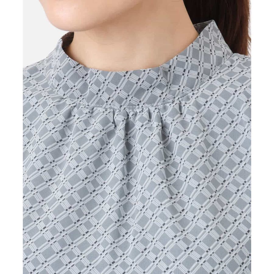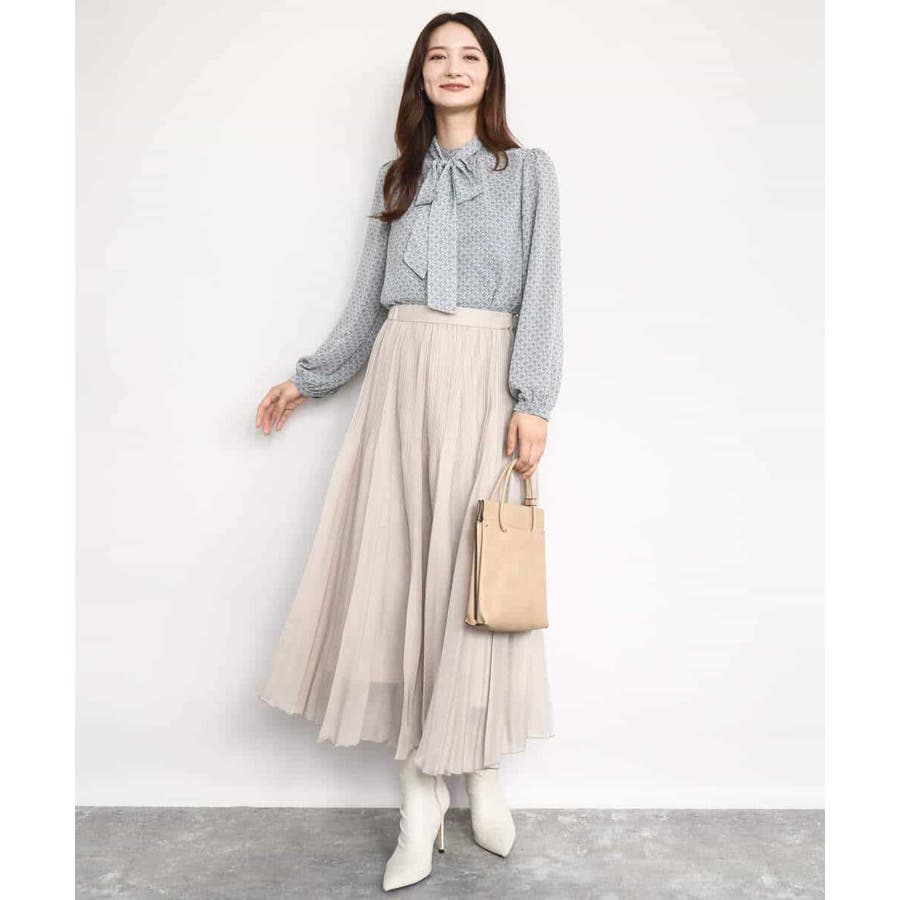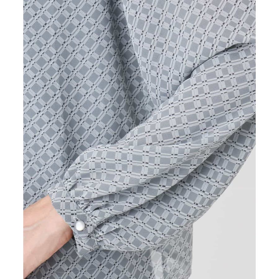 上品な印象のチェック柄のシフォンブラウス。取り外し可能のボウタイ付きで2wayで着こなし可能です。タイを外すと低めのスタンドネックで首元がクラシカルな印象に。