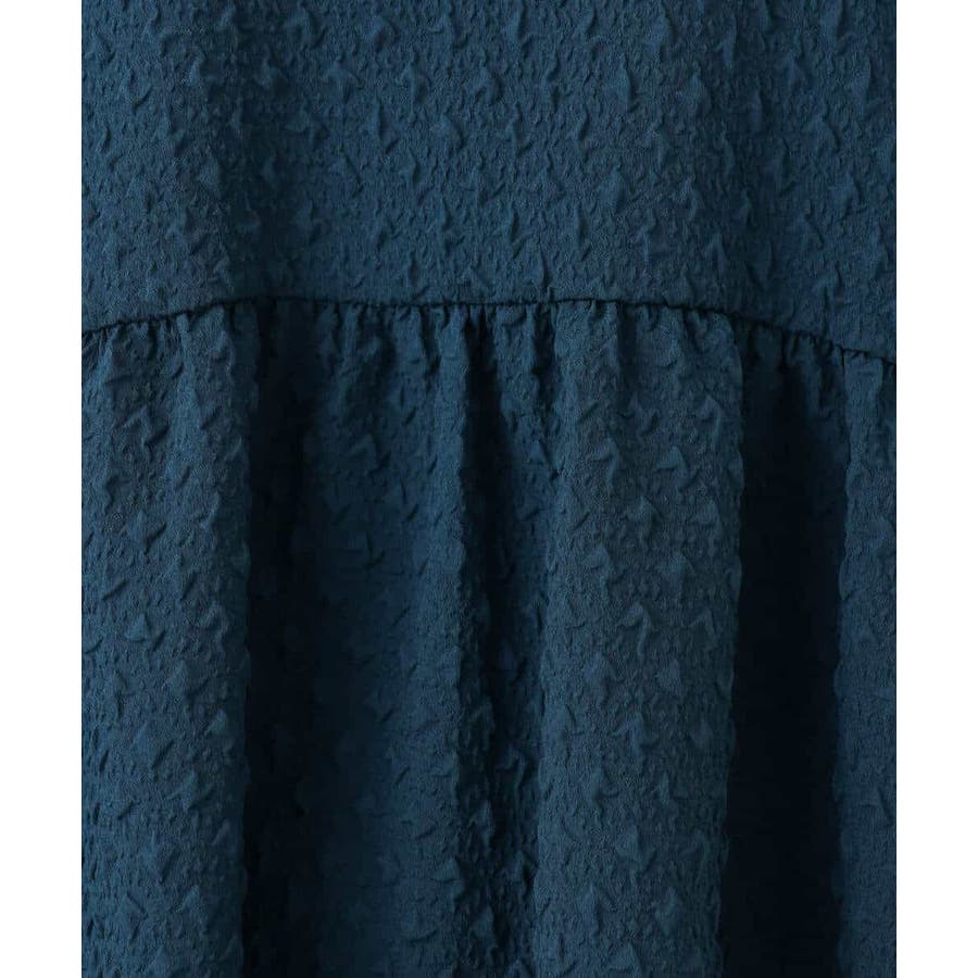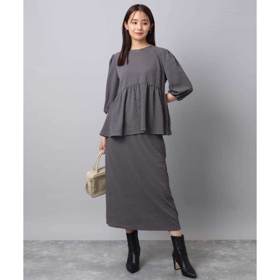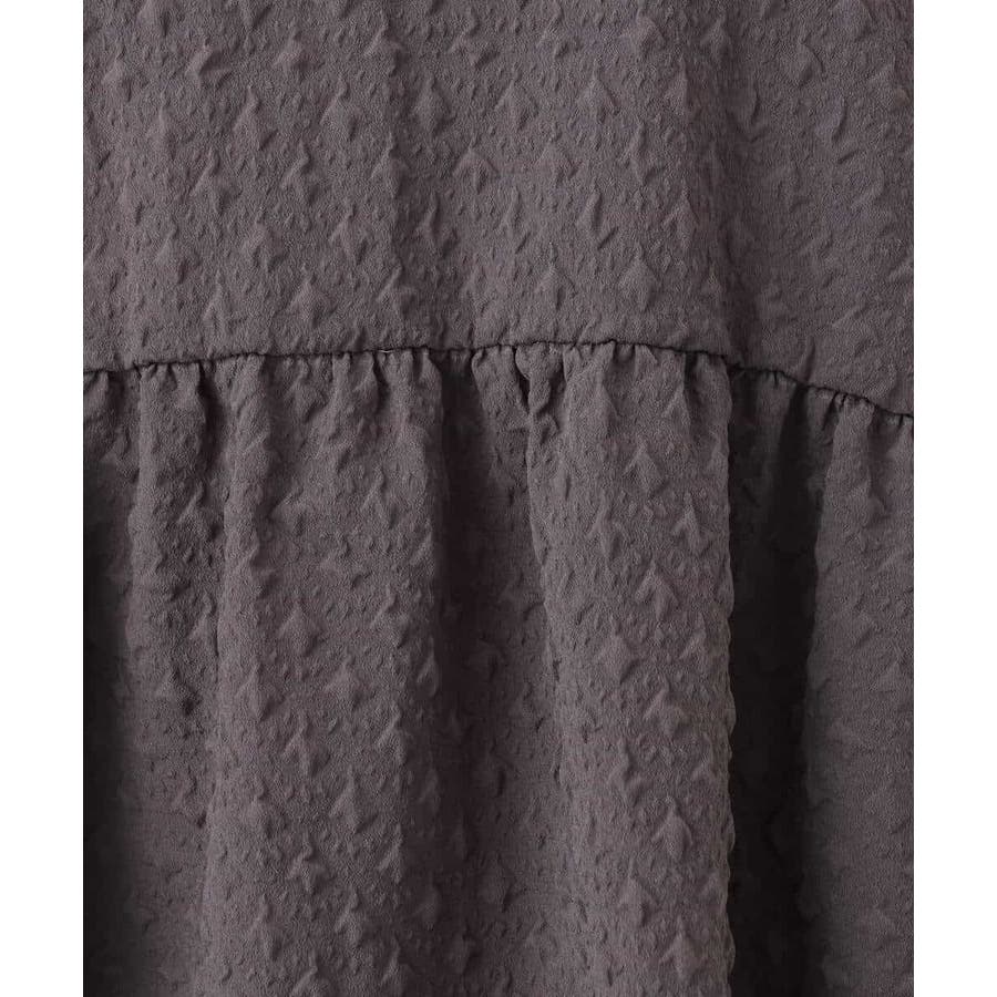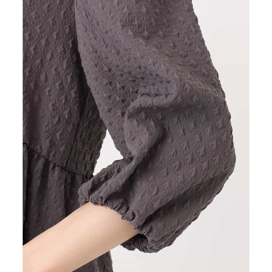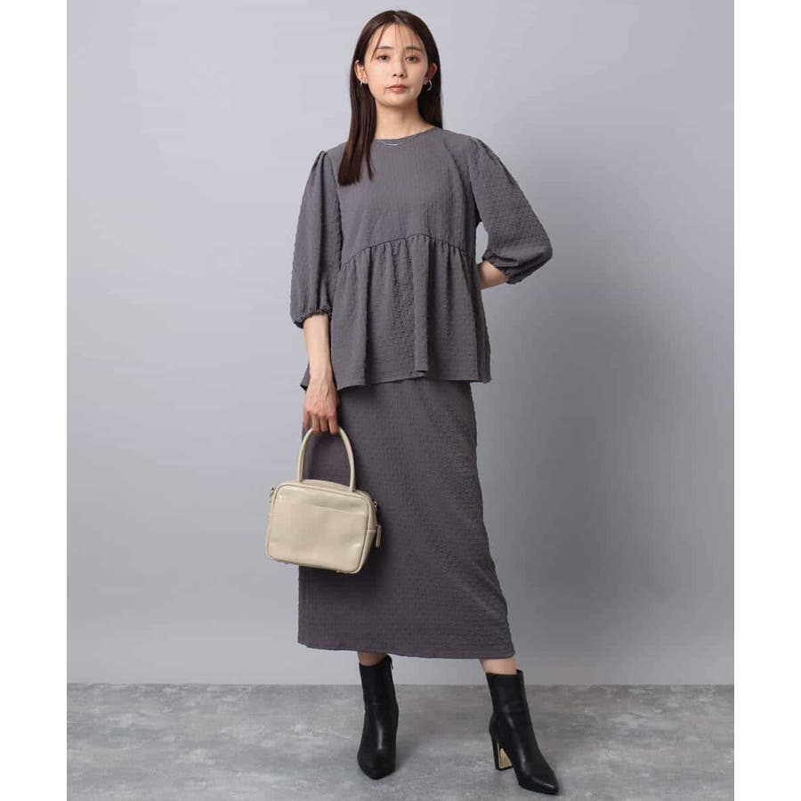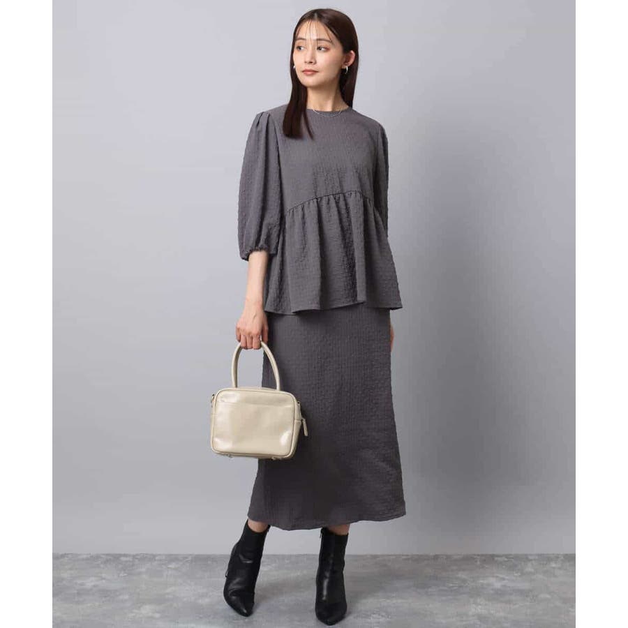 凹凸のあるエンボス加工がポイントでシンプルなデザインながらも存在感◎同窓会や帰省、休日のお出かけにぴったり。高めの切り替え位置でスッキリ見え。肘を隠す袖がエレガントな印象に!