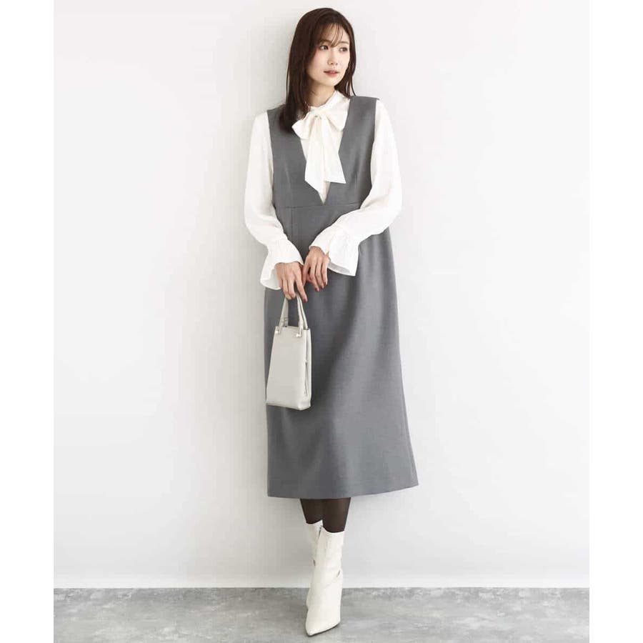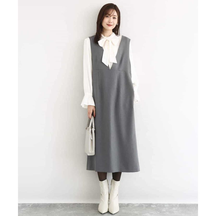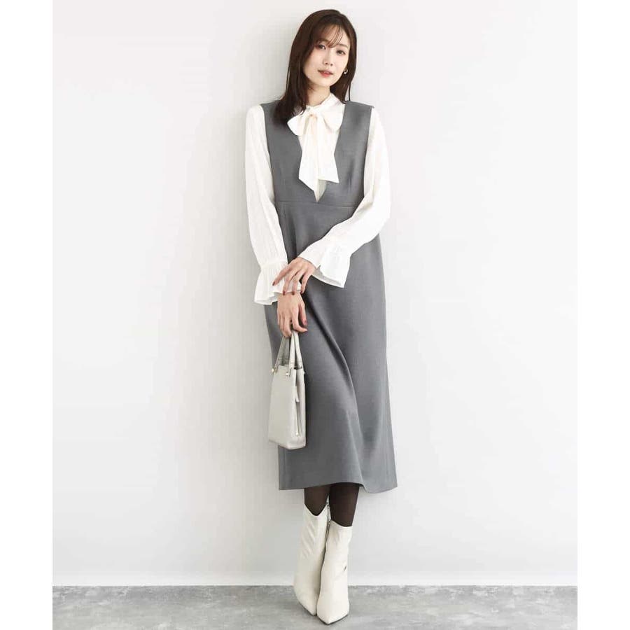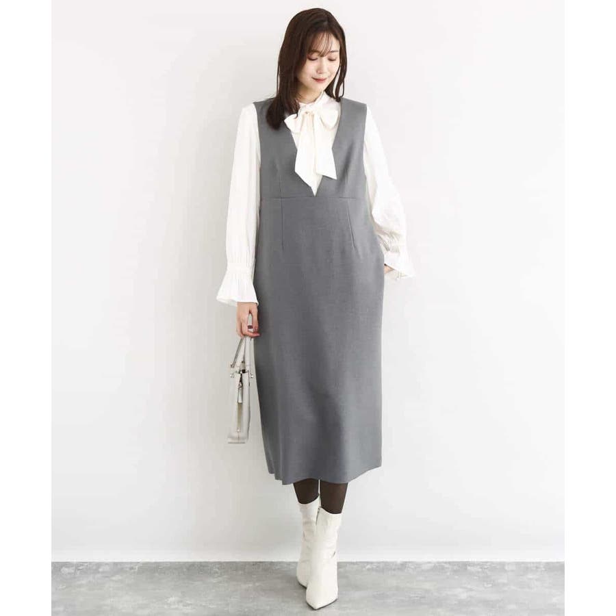 ウエスト下からギャザーで広がるペプラムシルエットは、パンツやナロースカートと好相性。ラクチンなのにきれい見えが叶います。ほかにもジャンスカのインナーに着こなしたり、ニットやカーディガンと重ねたりと、ボウタイデザインがコーディネートのアクセントになってくれるはず。