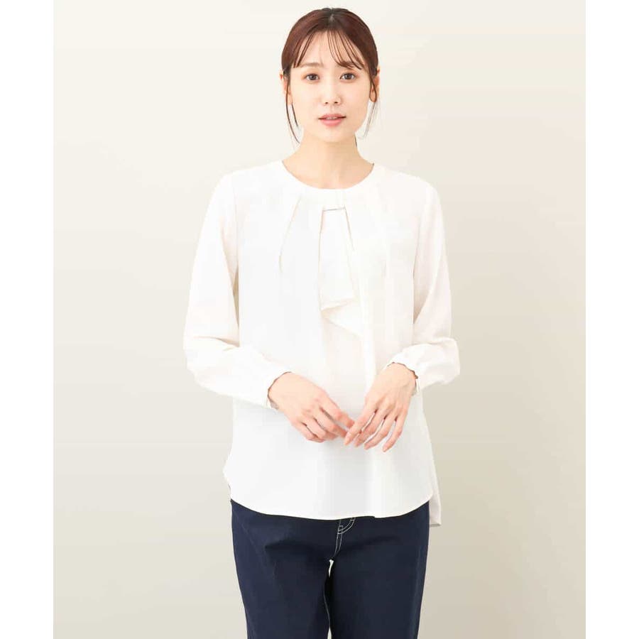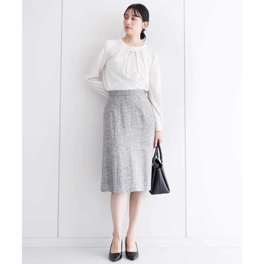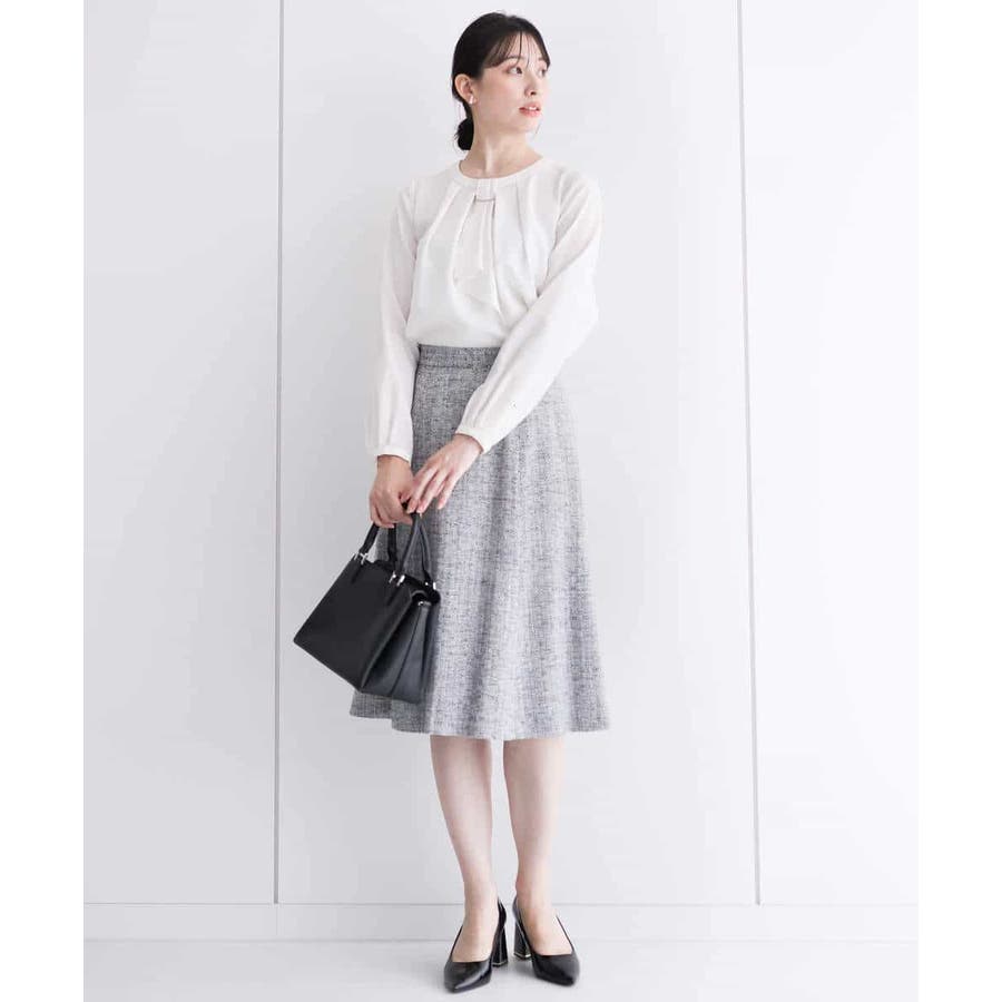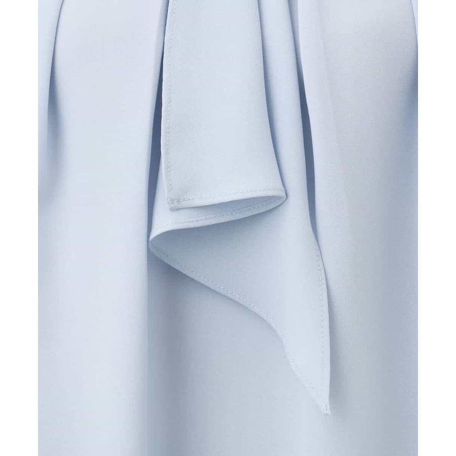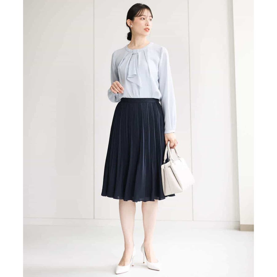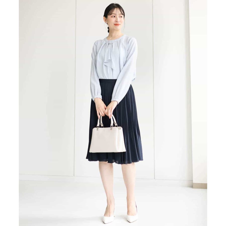 きれいめブラウスはオフィスシーンからセレモニーまで幅広く着回せます。例えばジャケットを羽織るときはボウタイ部分を内側に隠しメタルバーのみや何もなしのシンプルな状態で、一枚で着こなすときはボウタイで華やかに、とコーデに合わせてぜひ着こなしの違いを楽しんでください。