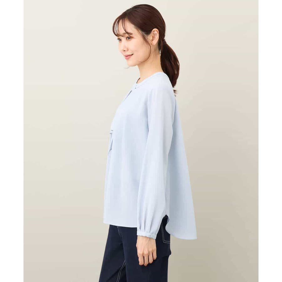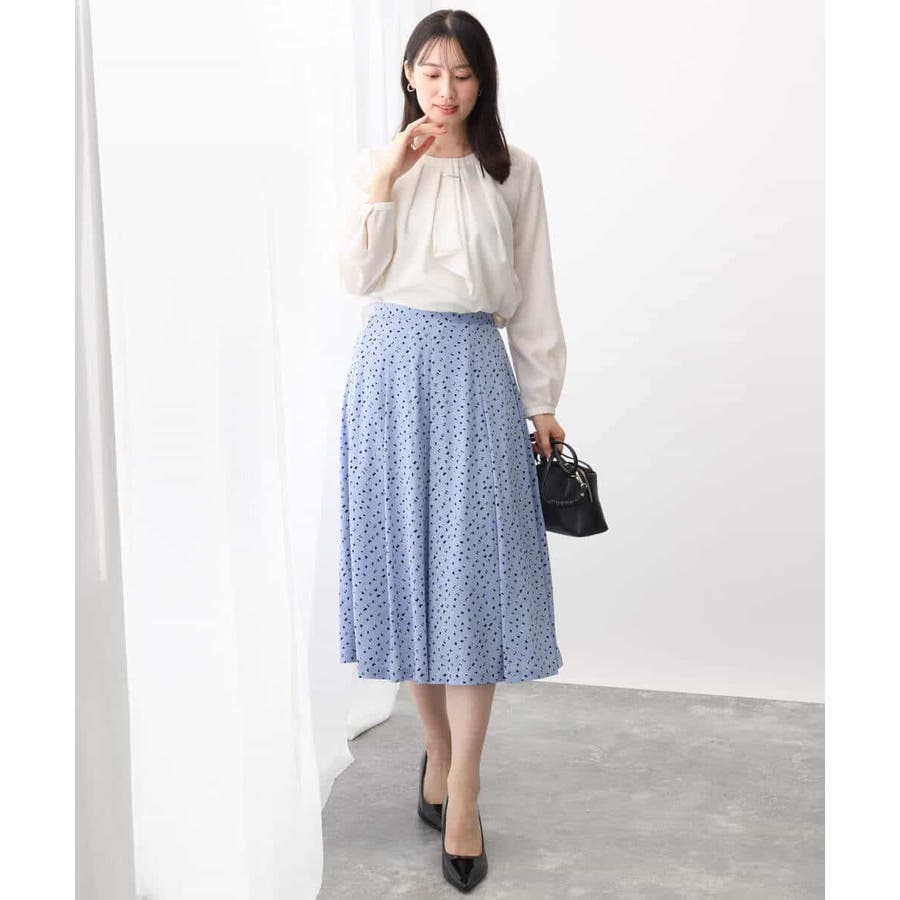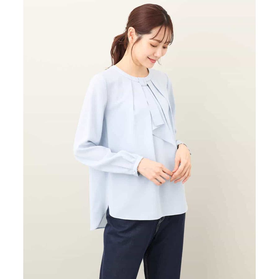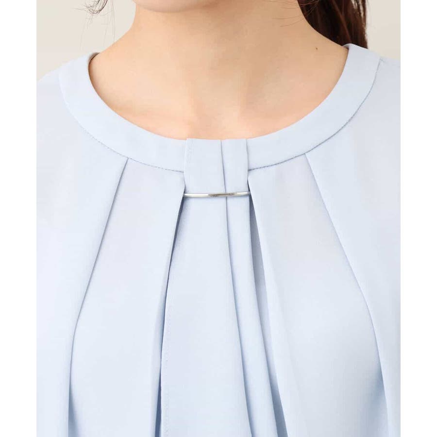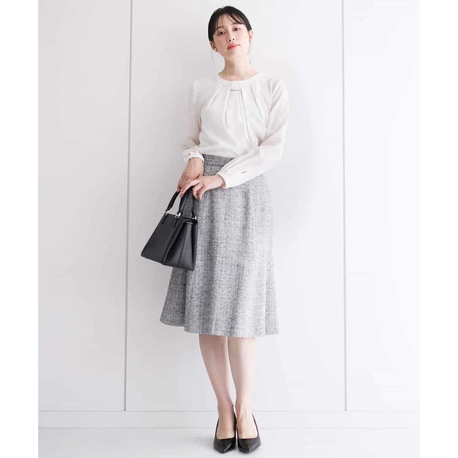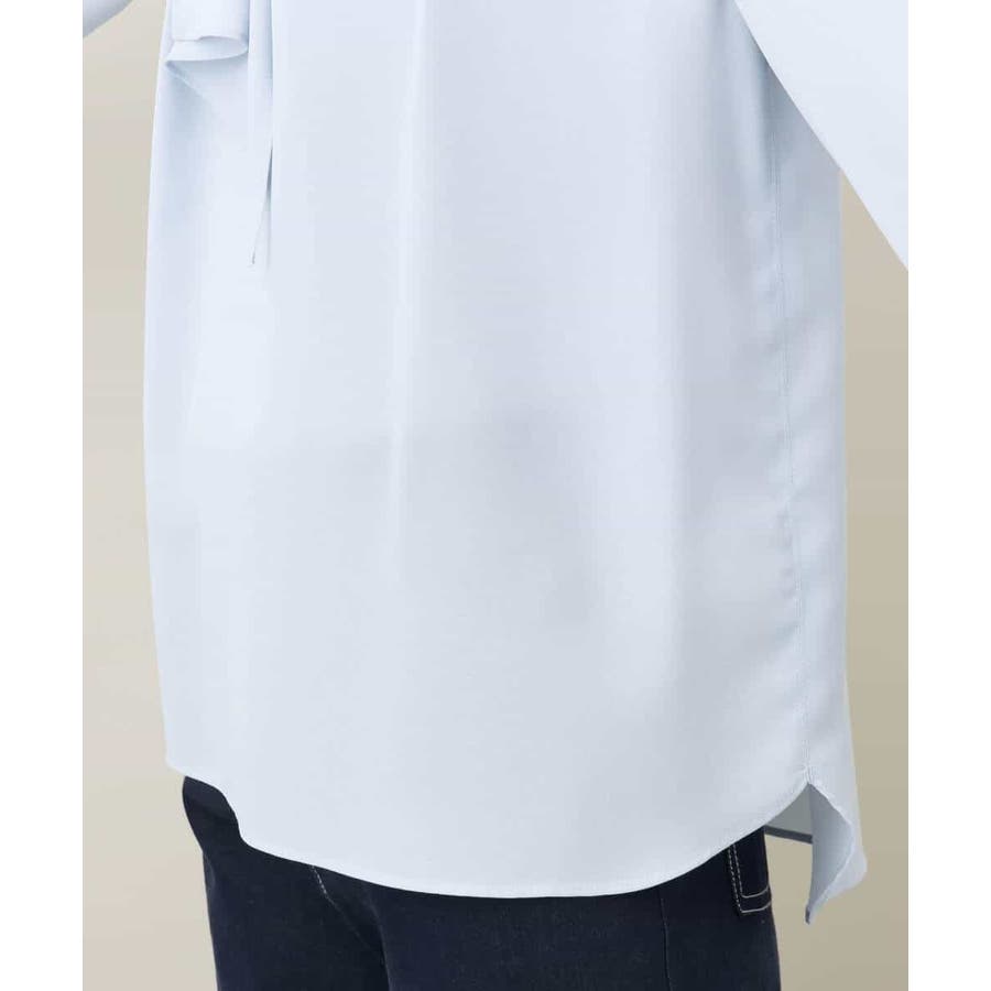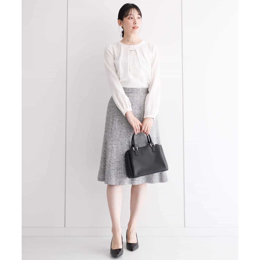 きれいめブラウスはオフィスシーンからセレモニーまで幅広く着回せます。例えばジャケットを羽織るときはボウタイ部分を内側に隠しメタルバーのみや何もなしのシンプルな状態で、一枚で着こなすときはボウタイで華やかに、とコーデに合わせてぜひ着こなしの違いを楽しんでください。