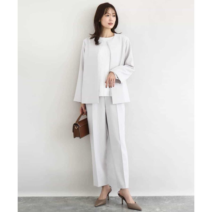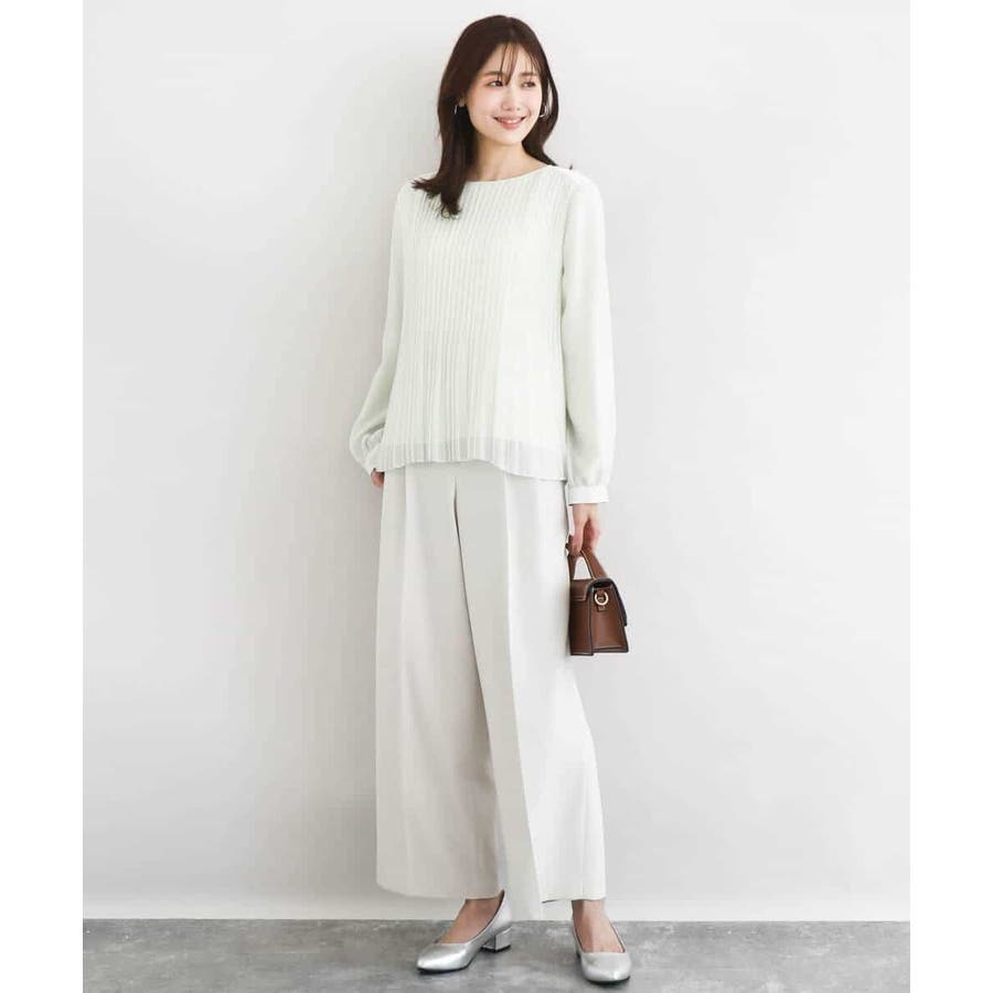 身頃のプリーツが印象的なブラウスは、パンツ合わせですっきりとした着こなしがおすすめ。一枚でも、ジャケットのインナーとしても活躍してくれます。