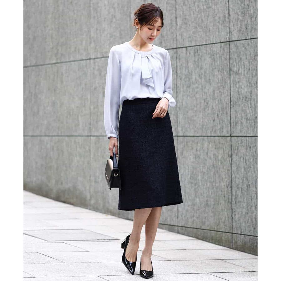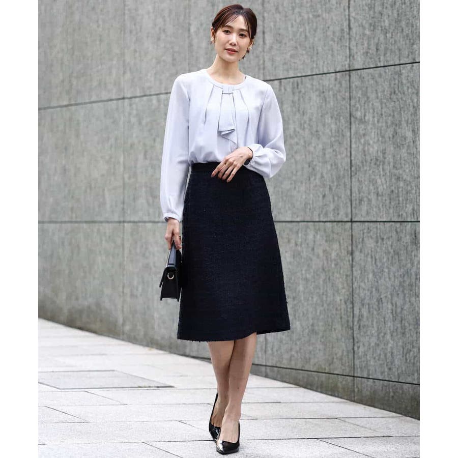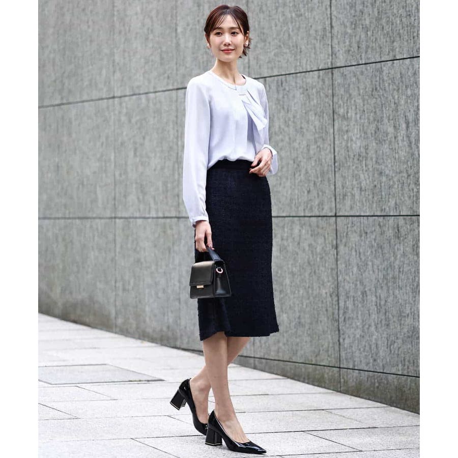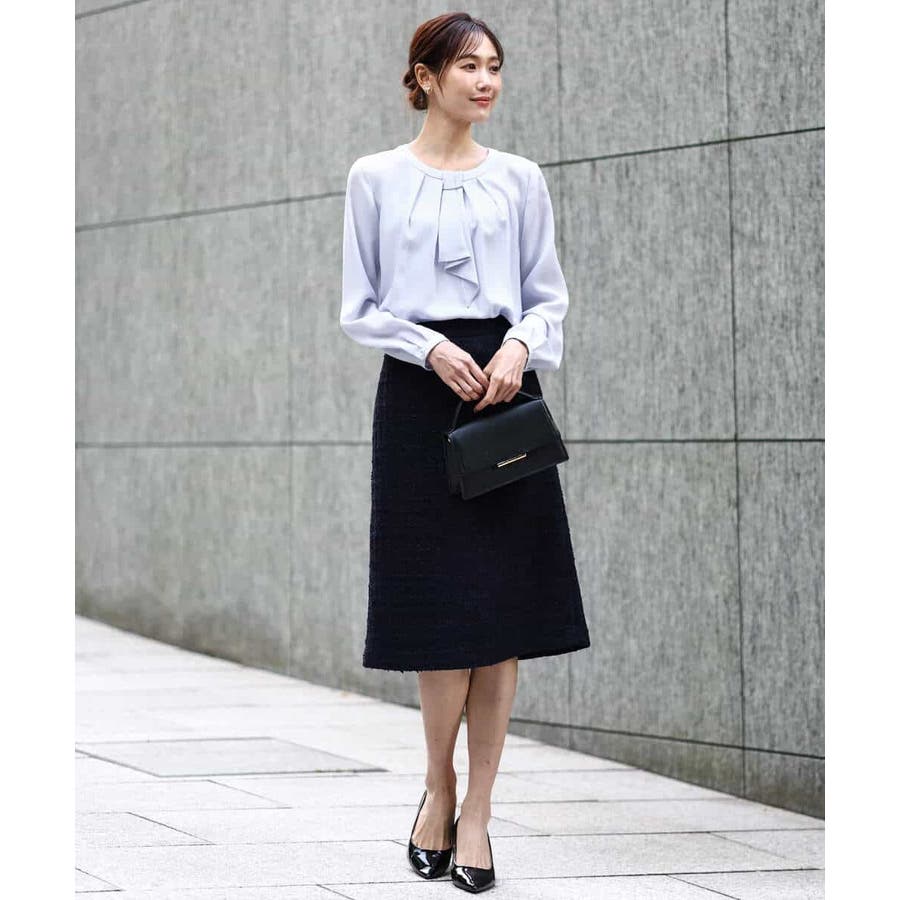 きれいめブラウスはオフィスシーンからセレモニーまで幅広く着回せます。例えばジャケットを羽織るときはボウタイ部分を内側に隠しメタルバーのみのシンプルな状態で、一枚で着こなすときはボウタイで華やかに、とコーデぃネートに合わせて着こなしの違いを楽しんで。普段使いはもちろん、卒業・入学のセレモニーシーンにもおすすめです。