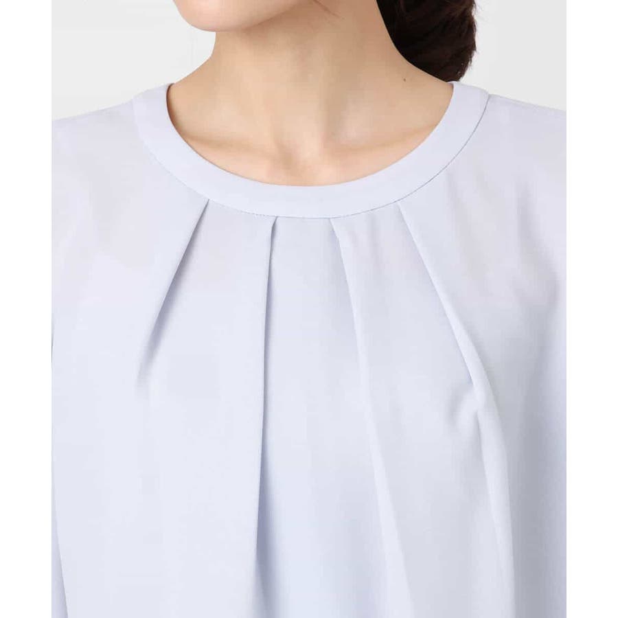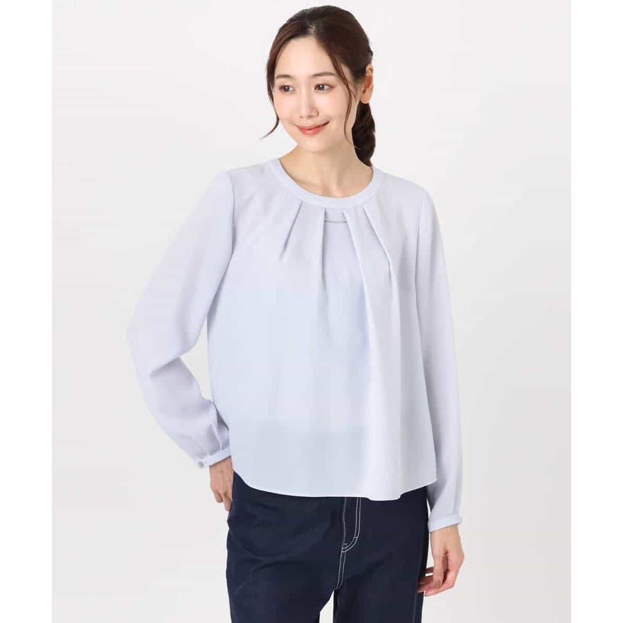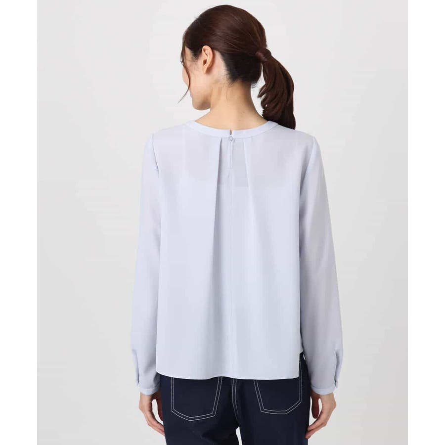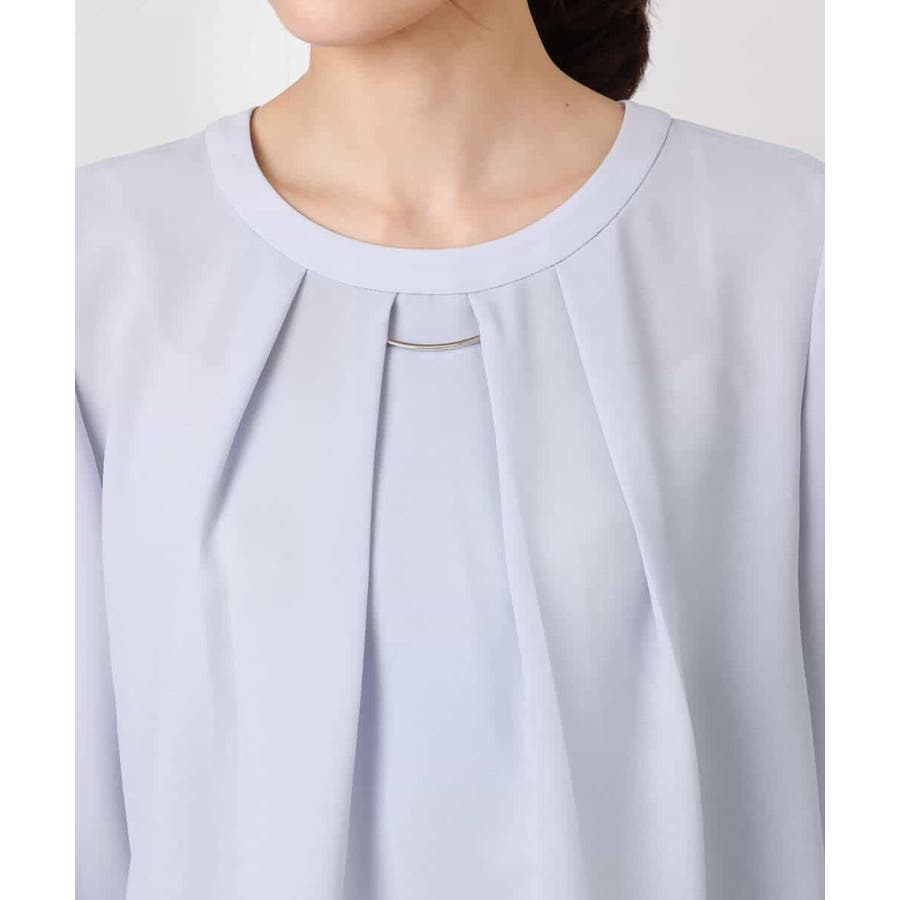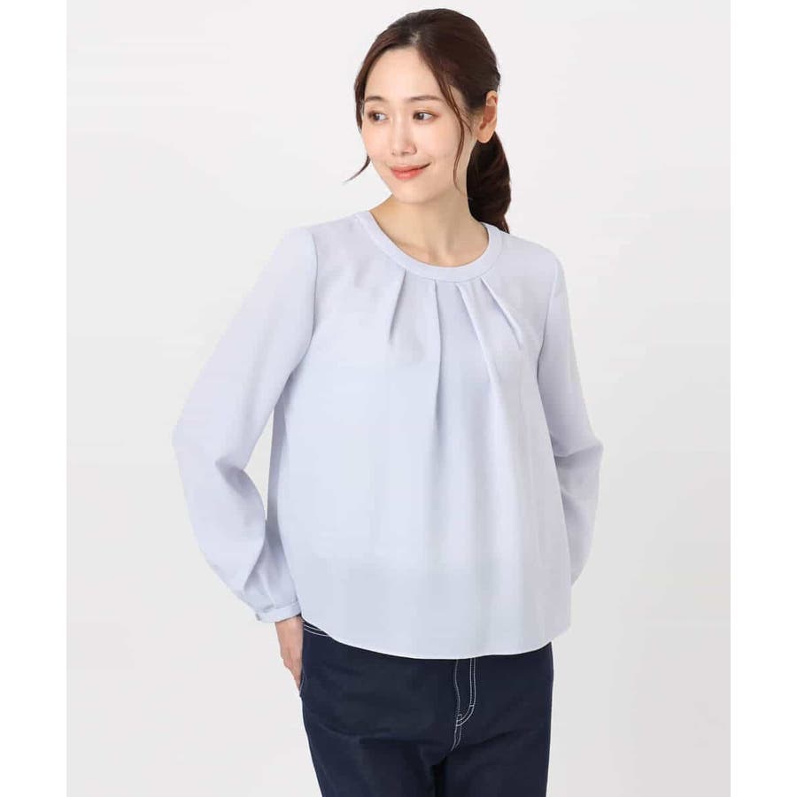 毎年人気のマルチwayブラウスが今年も登場。 一枚でボウタイデザインにしたり、シンプルなクルーネックとして着たりと、いろんな着こなしを楽しめるのが魅力です。クルーネックデザインなので、どんなタイプのジャケットとも合わせやすいのがポイントです。さらっとなめらかな素材感で、着心地も快適です。 季節を選ばず着られる素材なので、一枚持っていると重宝すること間違いなしです。