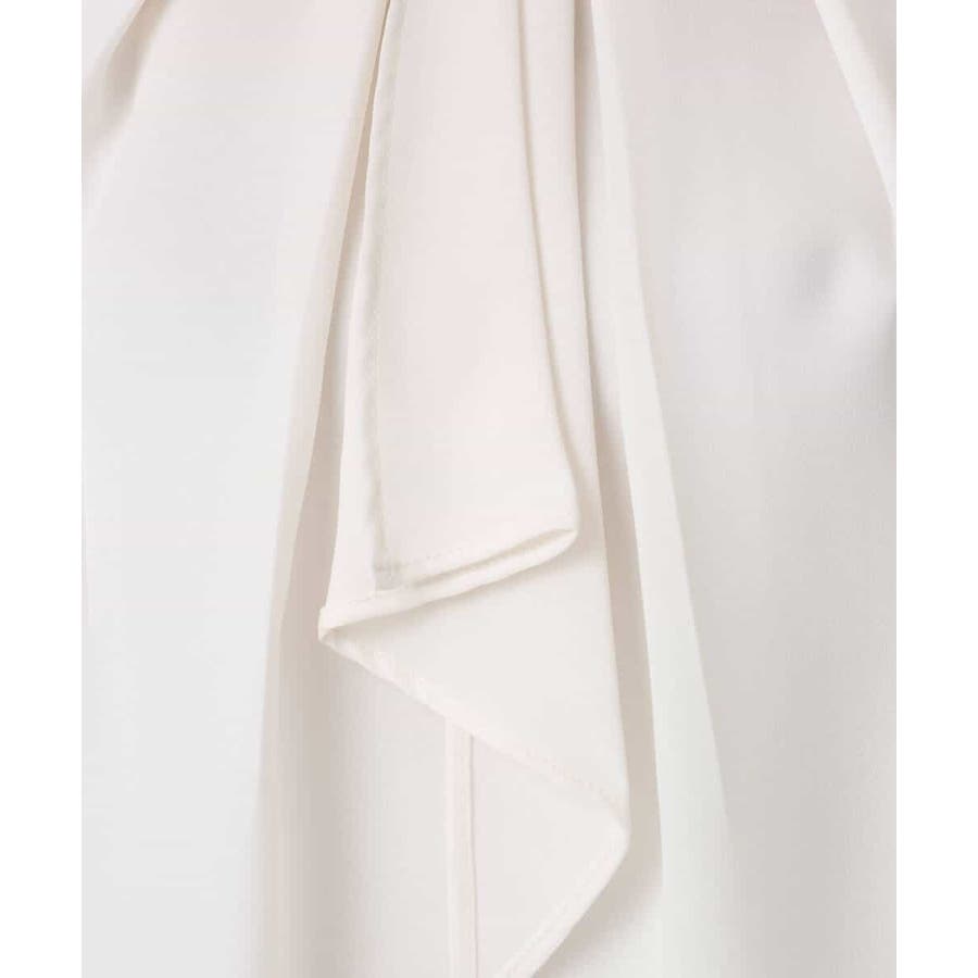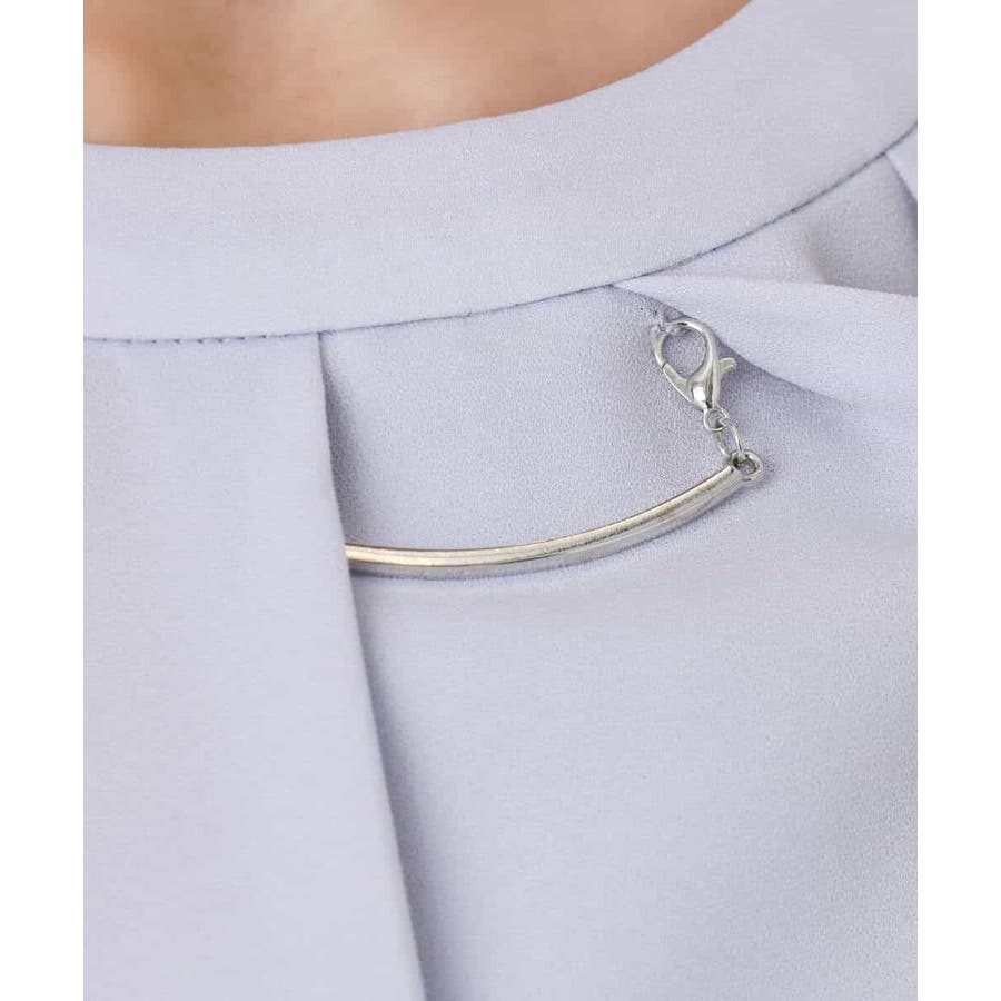 ボウタイとメタルバーが印象的なブラウス。首元のバーは取り外し可能。またボウタイ部分も内側に隠すこともできるので、シンプルなネックデザインのブラウスとしても着用いただけるマルチwayブラウスです。