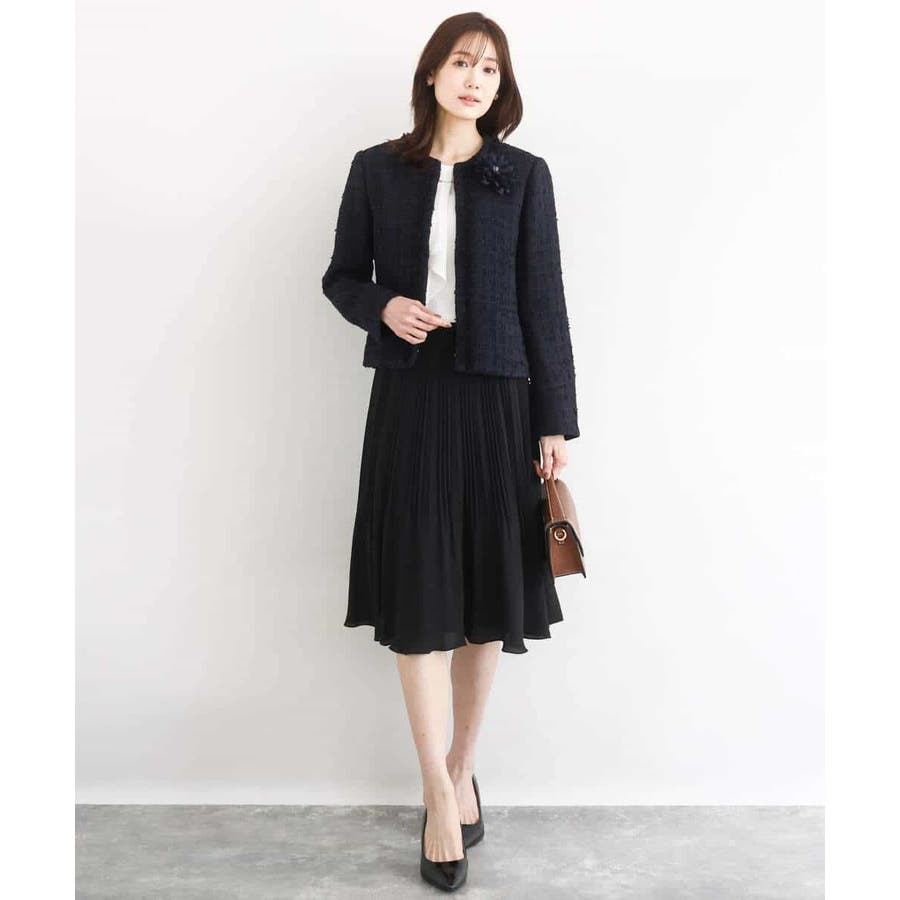 なめらかで落ち感のあるジョーゼット素材を使用。きれいな印象の素材はジャケットのインナーなどにもおすすめです。