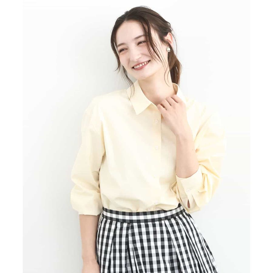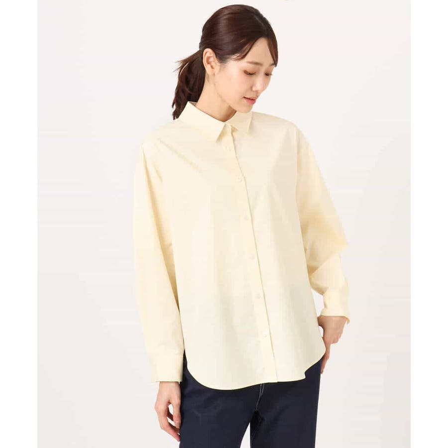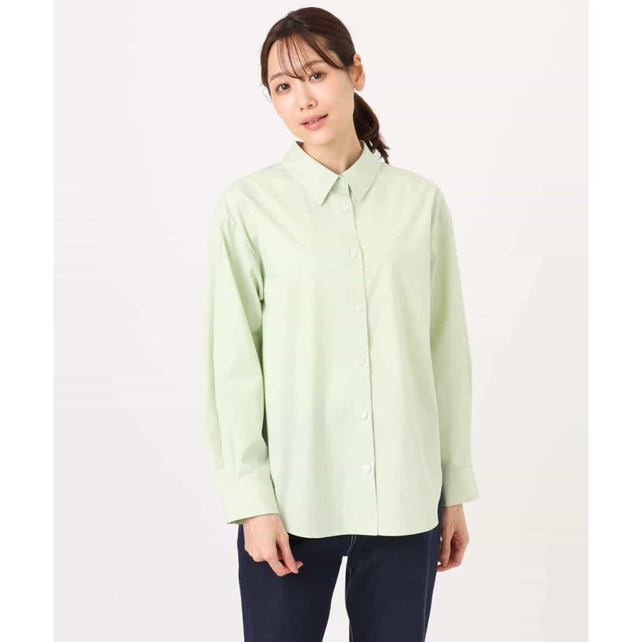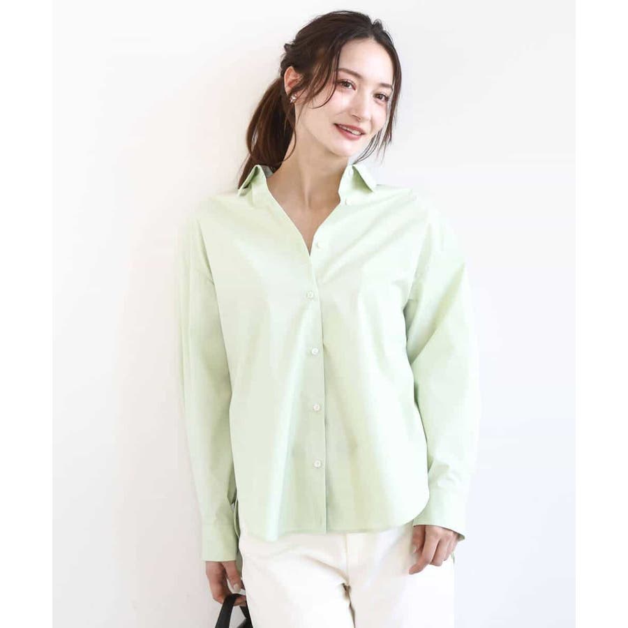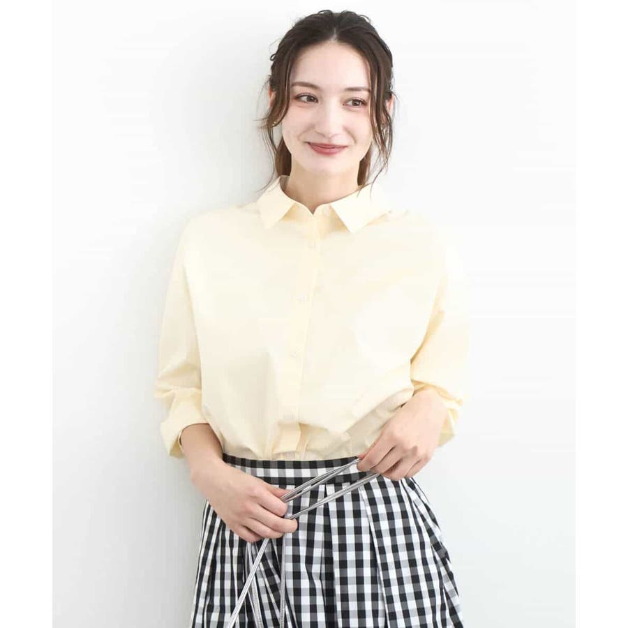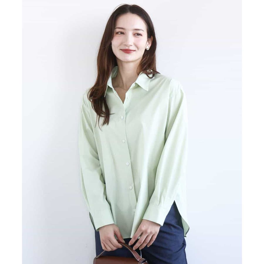 コットン混ベーシックシャツ(無地)/接触冷感/防シワ/洗える