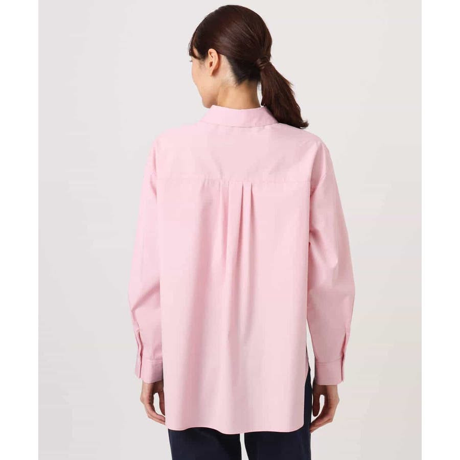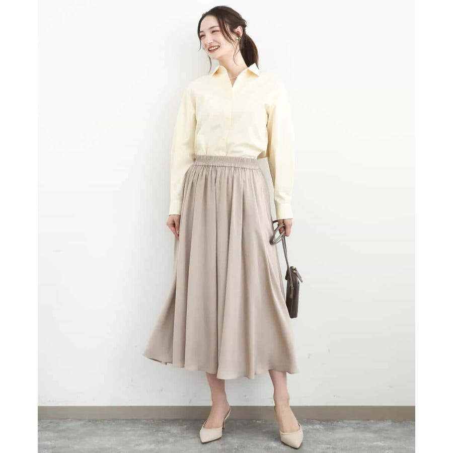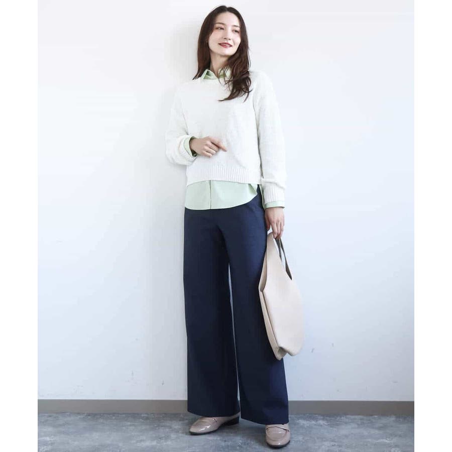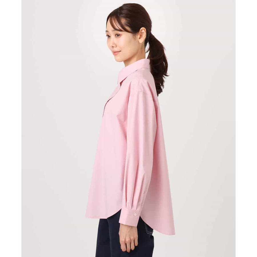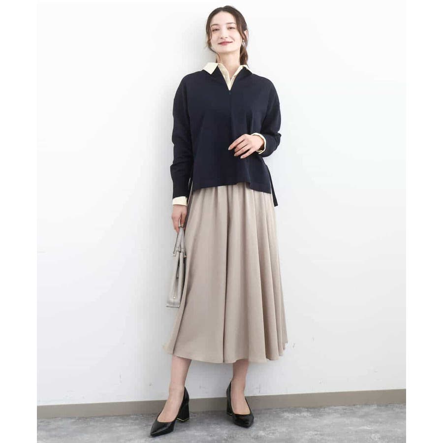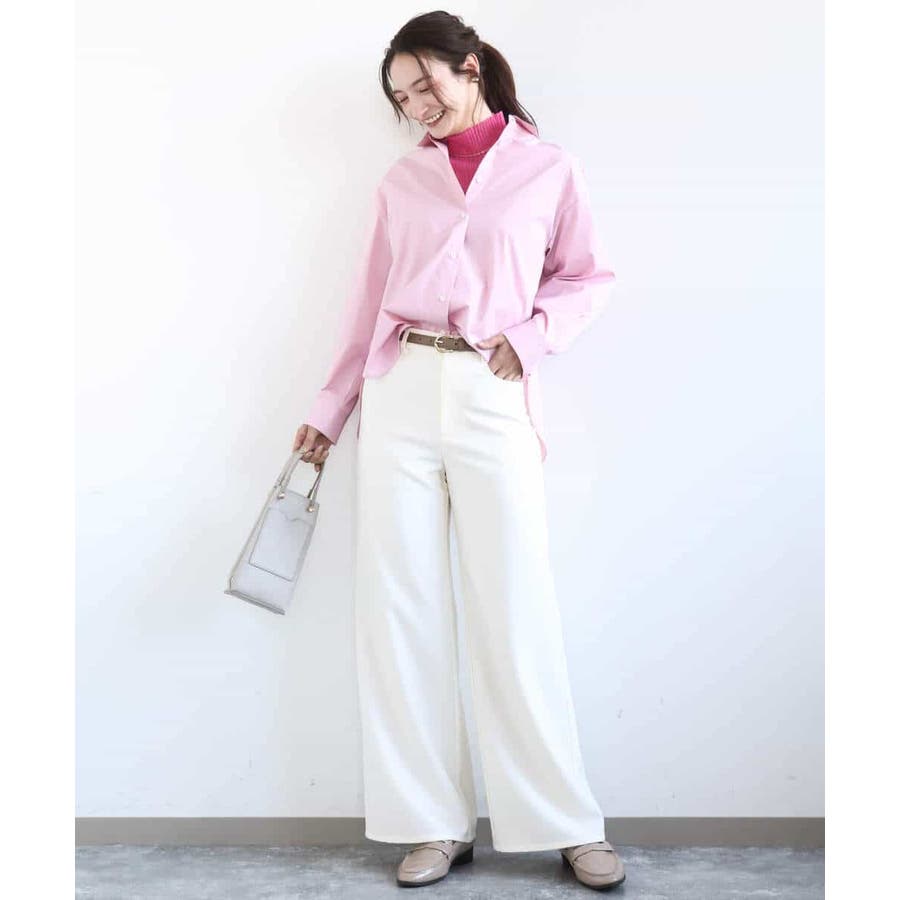 前身頃と後見頃の長さの違いがあまり気にならなかったのが良かったです。前身頃は股下、後ろ見頃はお尻がすっぽり隠れる長さでお腹とお尻をカバーできたのがうれしいポイント。素材はコットンが半分ほど入っていますが、着用感はハリ感があり、コットンの柔らかさ故のカジュアル感はあまり感じず、オフィスでも使えそうです。色ものはすべてパステルカラーなので着用に抵抗感なく、春カラーとして取り入れやすいアイテムです。