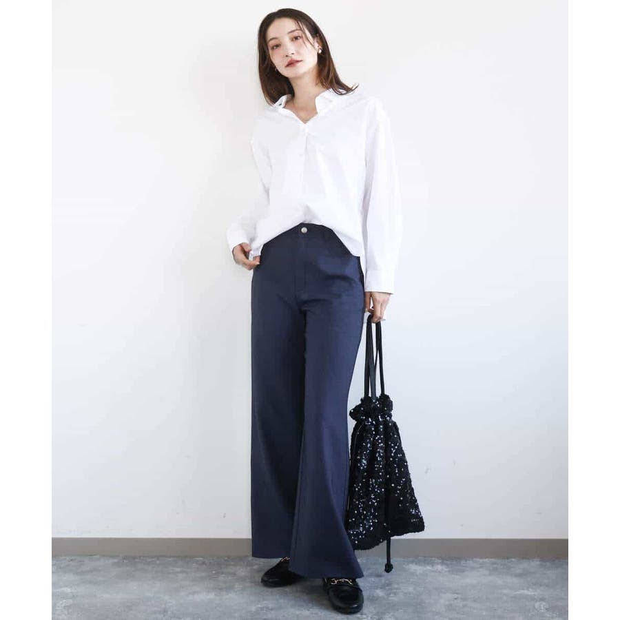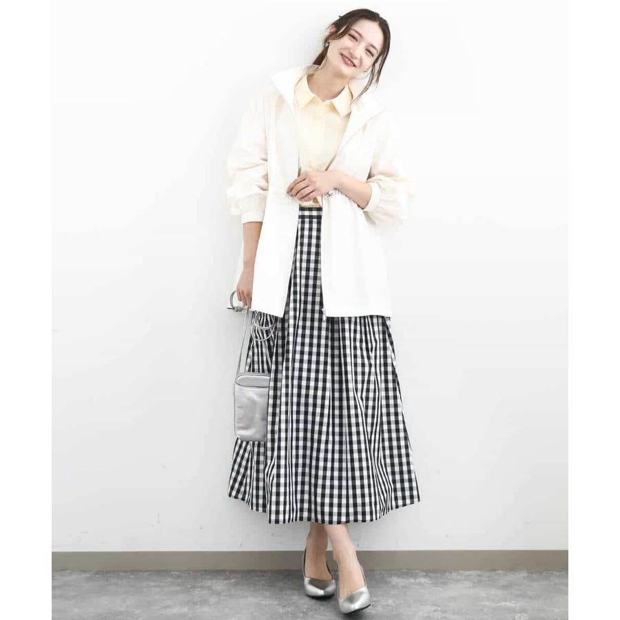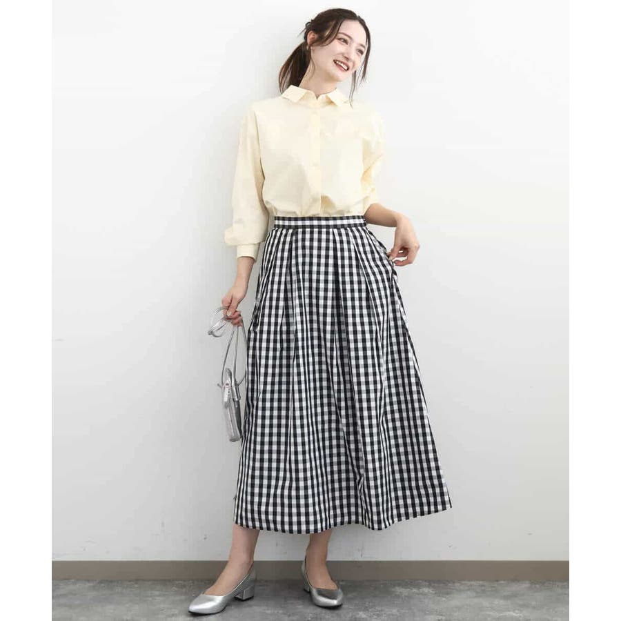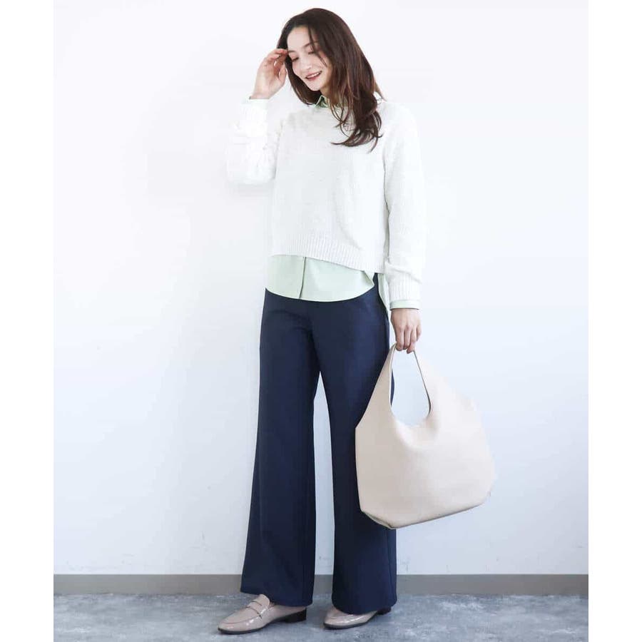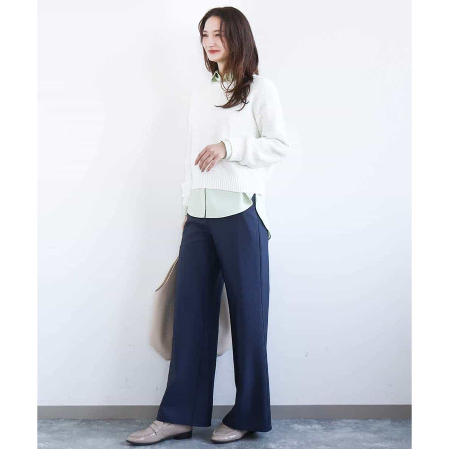 前身頃と後見頃の長さの違いがあまり気にならなかったのが良かったです。前身頃は股下、後ろ見頃はお尻がすっぽり隠れる長さでお腹とお尻をカバーできたのがうれしいポイント。素材はコットンが半分ほど入っていますが、着用感はハリ感があり、コットンの柔らかさ故のカジュアル感はあまり感じず、オフィスでも使えそうです。色ものはすべてパステルカラーなので着用に抵抗感なく、春カラーとして取り入れやすいアイテムです。