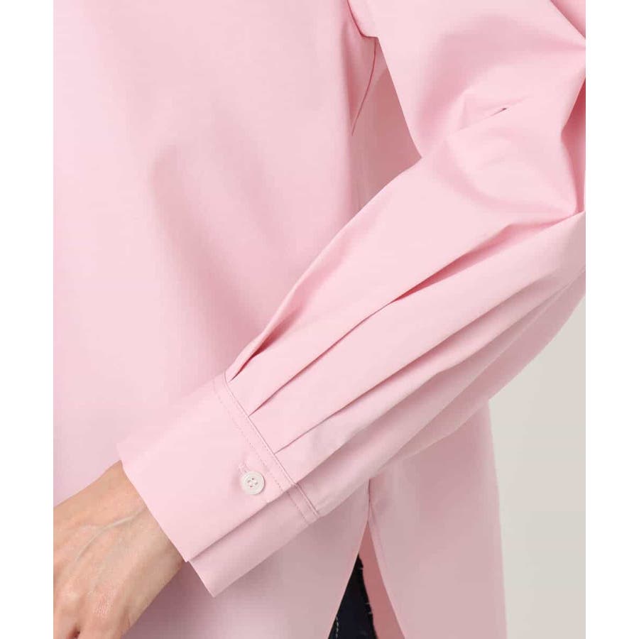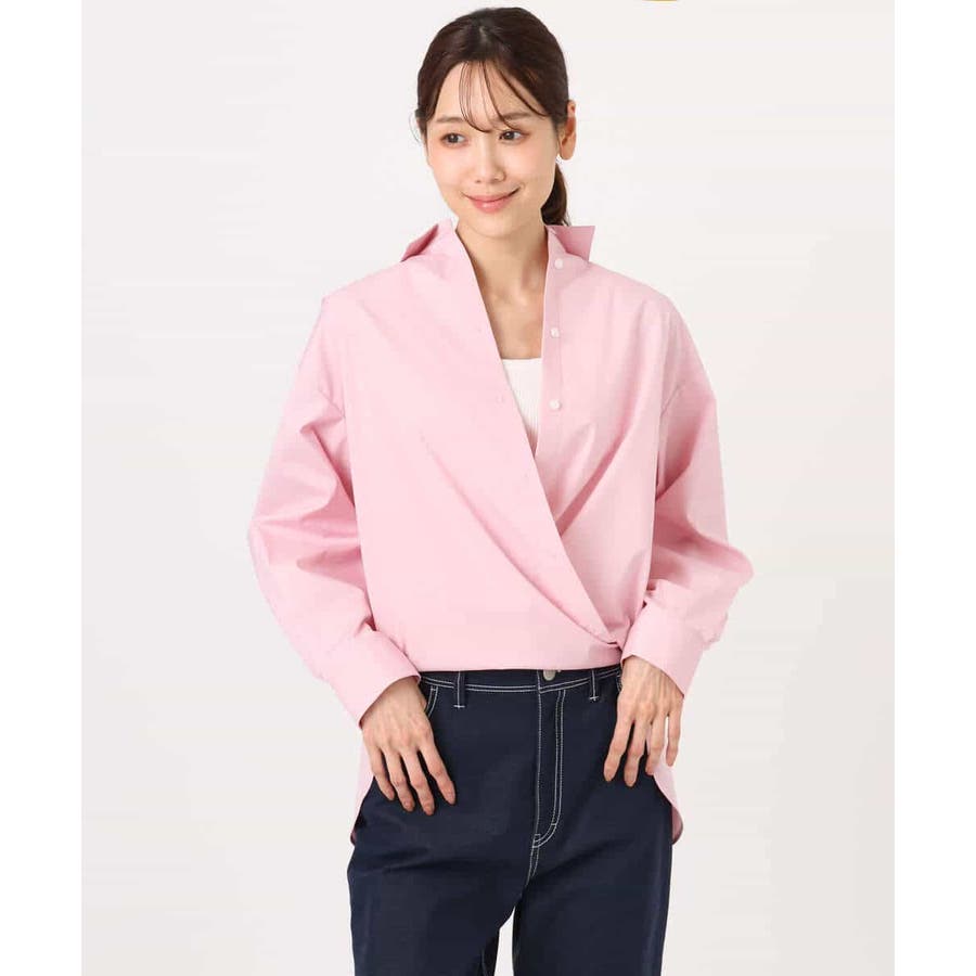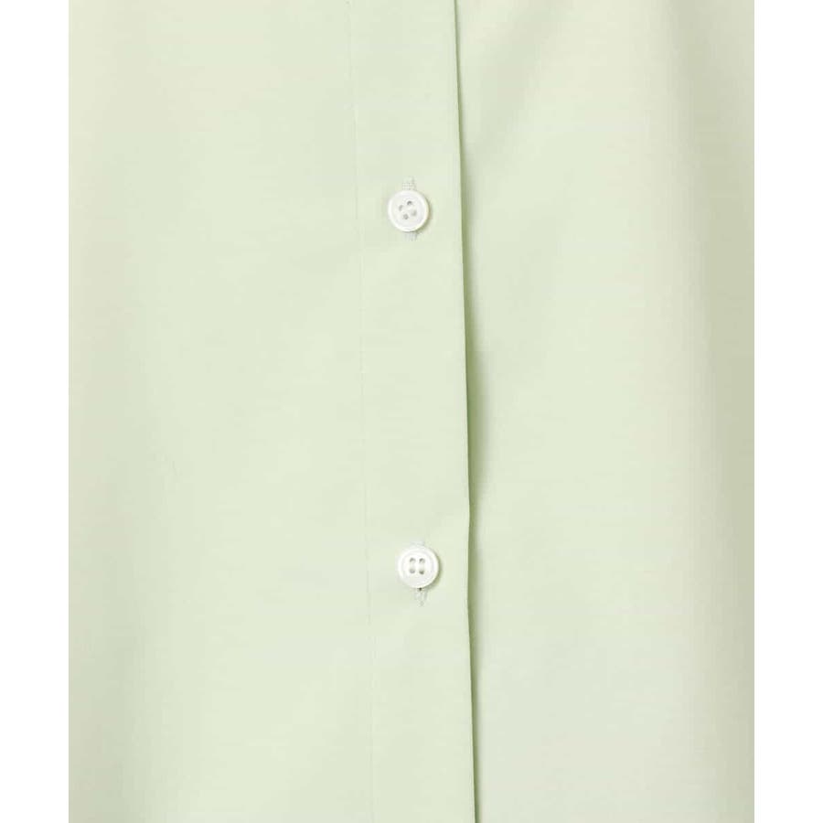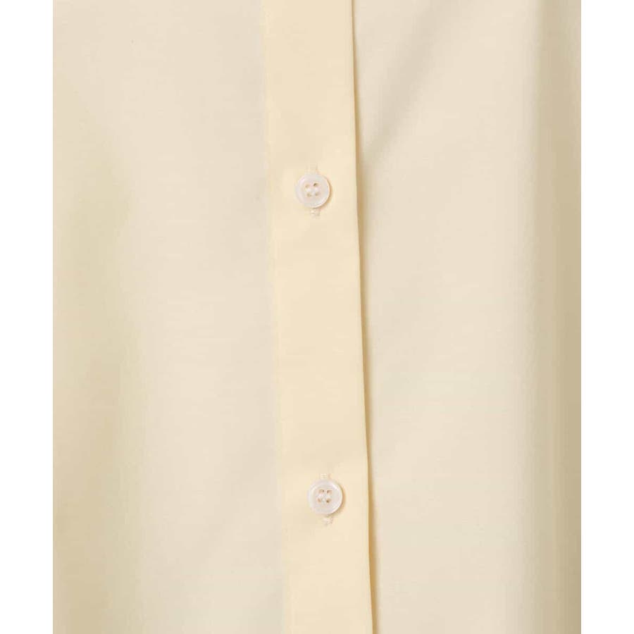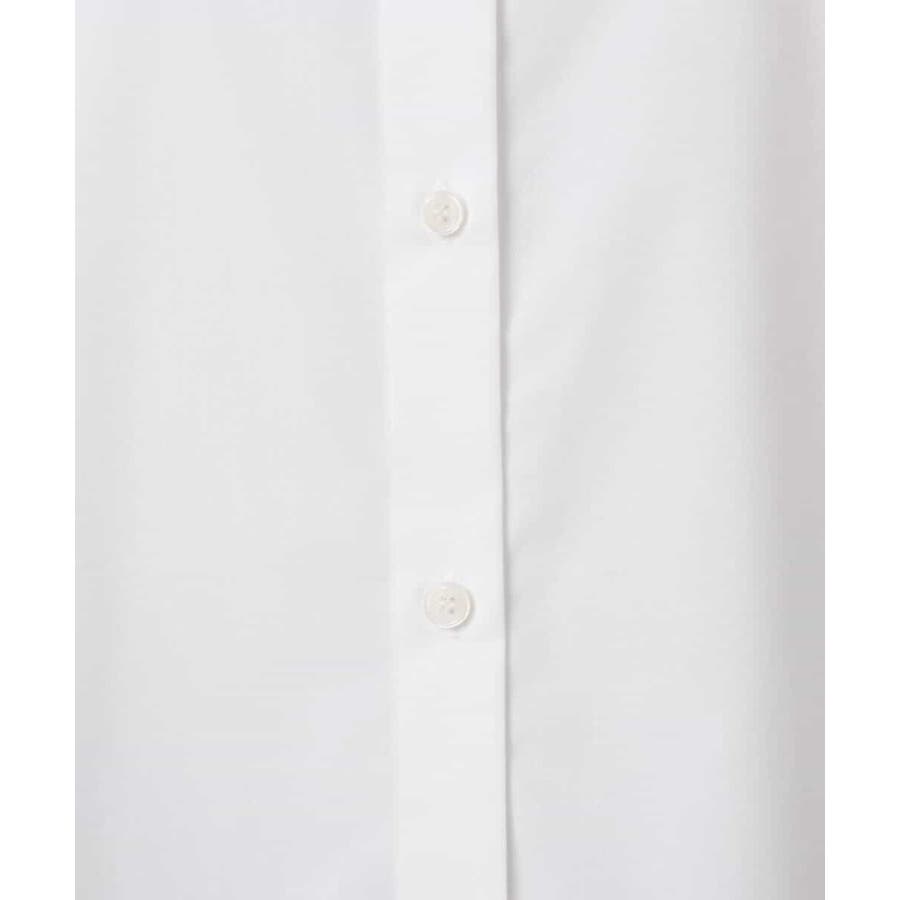 使い勝手の良いベーシックなシャツ。そのままの着用はもちろん、フロント一番下に釦ホールがあるので、前立て裏の釦に留めていただくと、タックアップ風に。両脇内側についた釦を留めていただくとカシュクール風にアレンジも可能と3wayで着用可能。カシュクールの場合は、襟を抜いての着こなしがおすすめです。