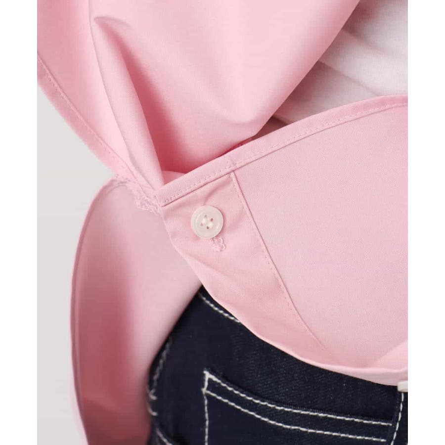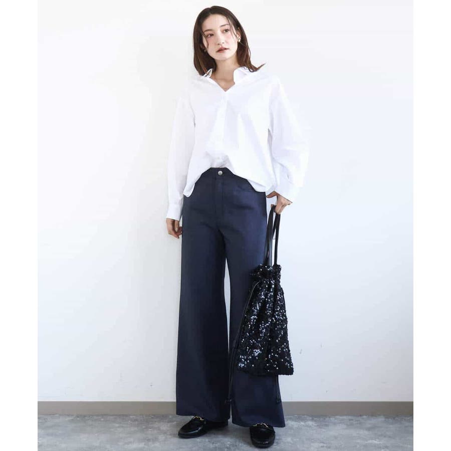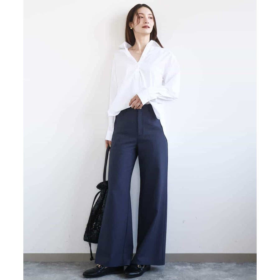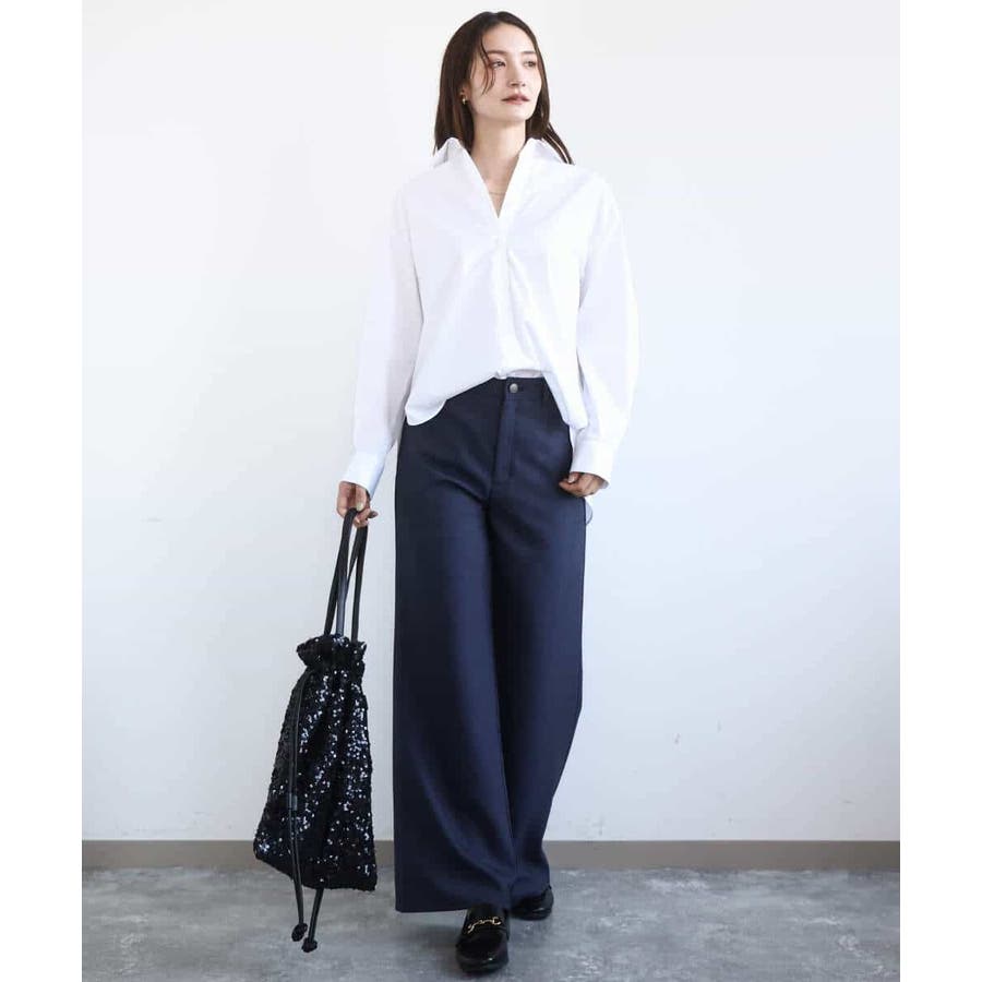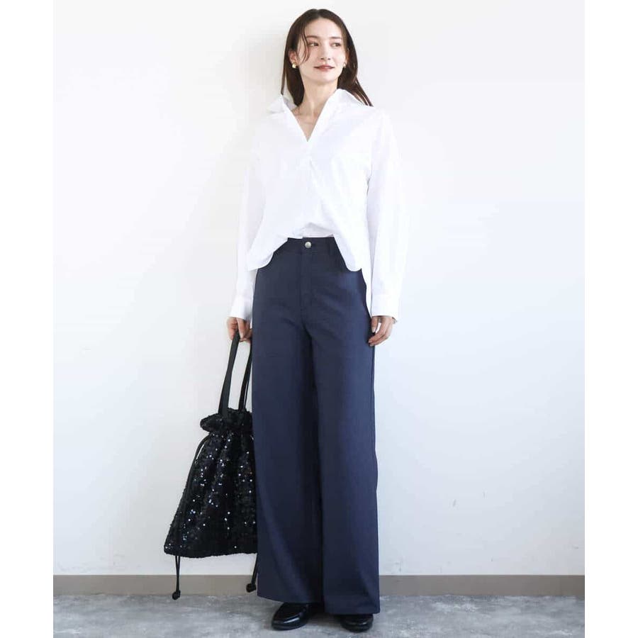 使い勝手の良いベーシックなシャツ。そのままの着用はもちろん、フロント一番下に釦ホールがあるので、前立て裏の釦に留めていただくと、タックアップ風に。両脇内側についた釦を留めていただくとカシュクール風にアレンジも可能と3wayで着用可能。カシュクールの場合は、襟を抜いての着こなしがおすすめです。