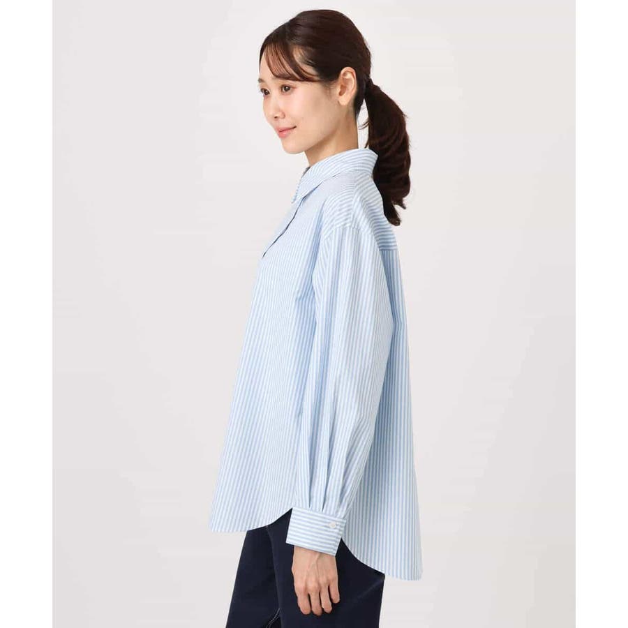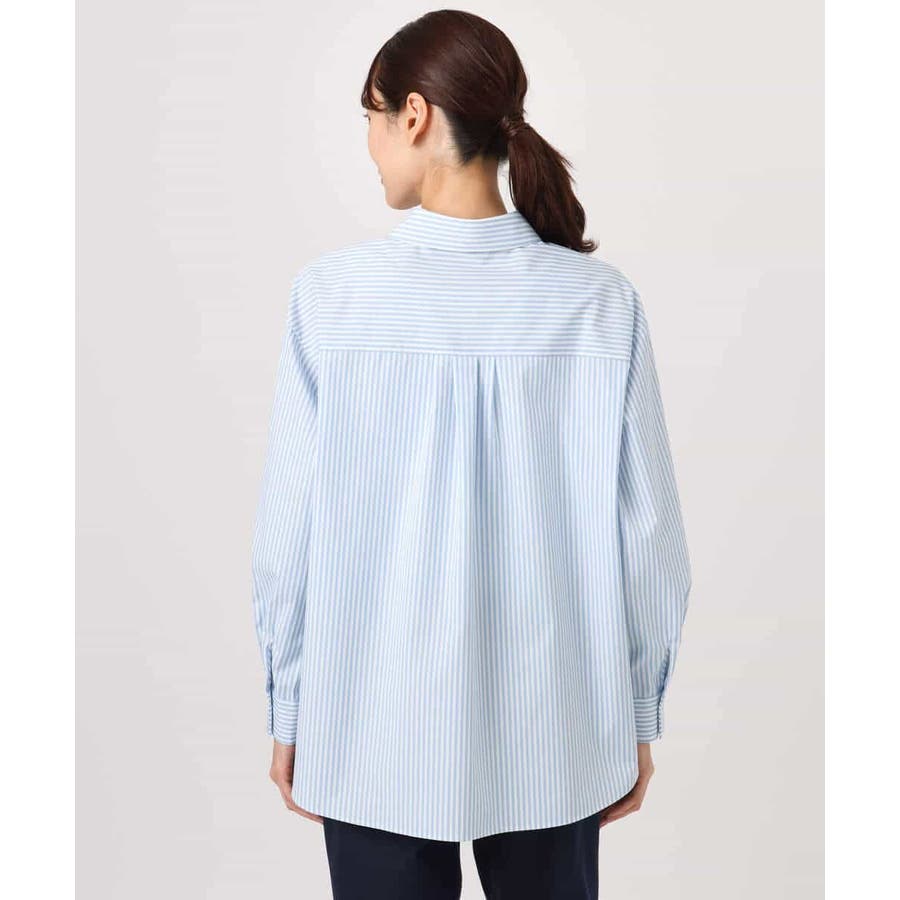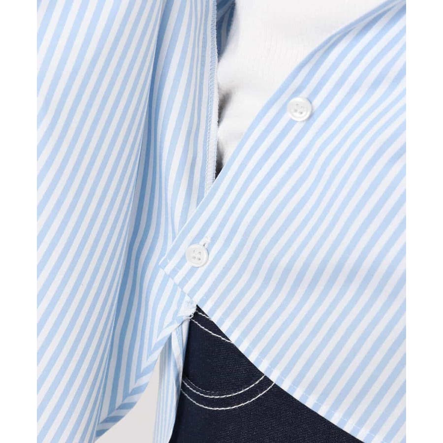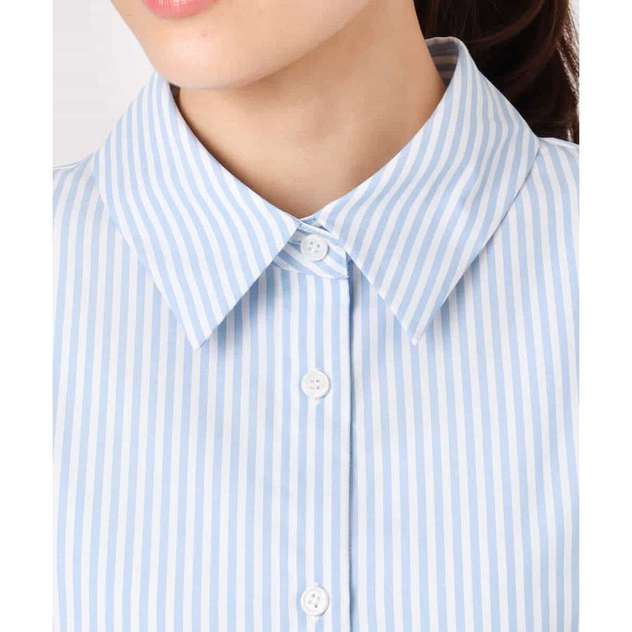 コットン混ベーシックシャツ(ストライプ)/接触冷感/防シワ/洗える