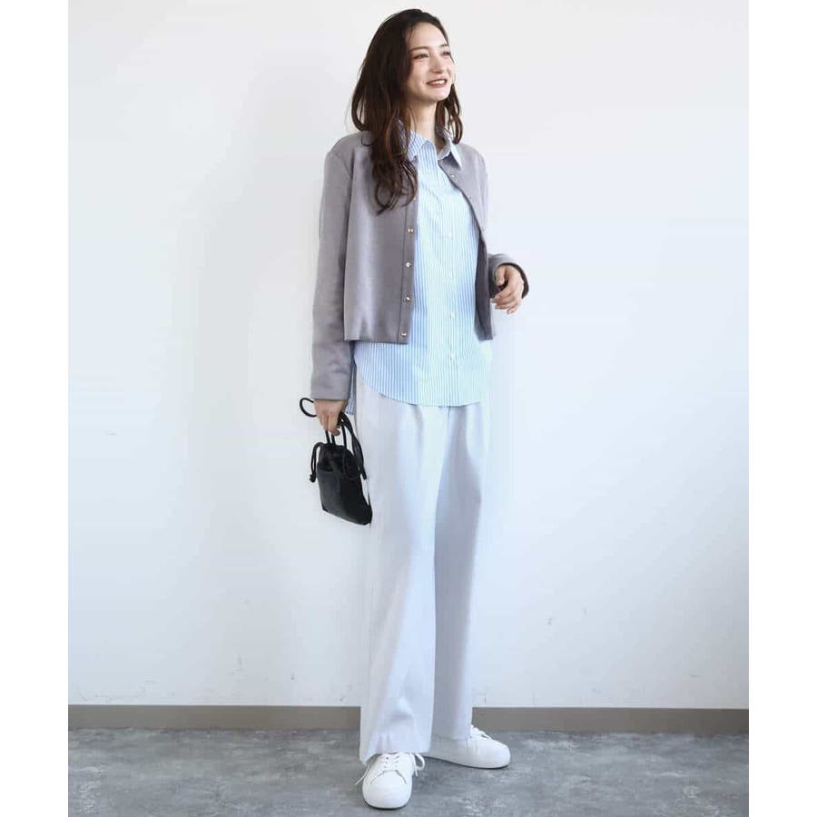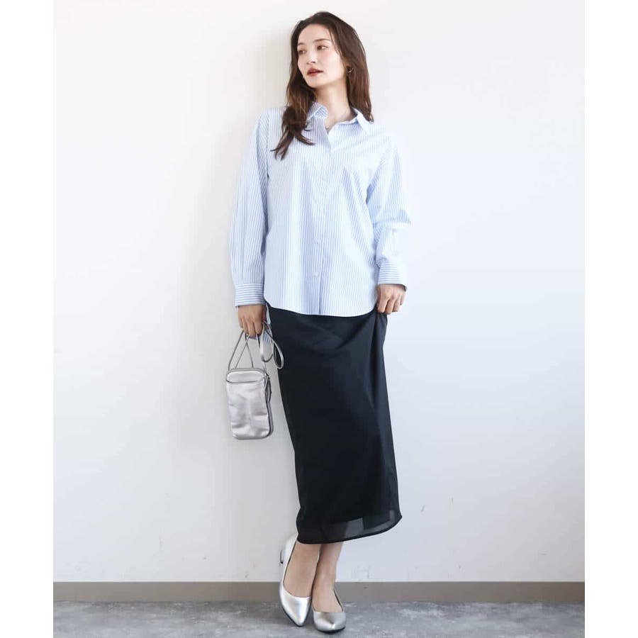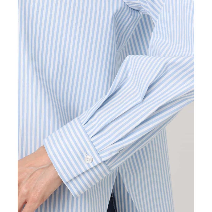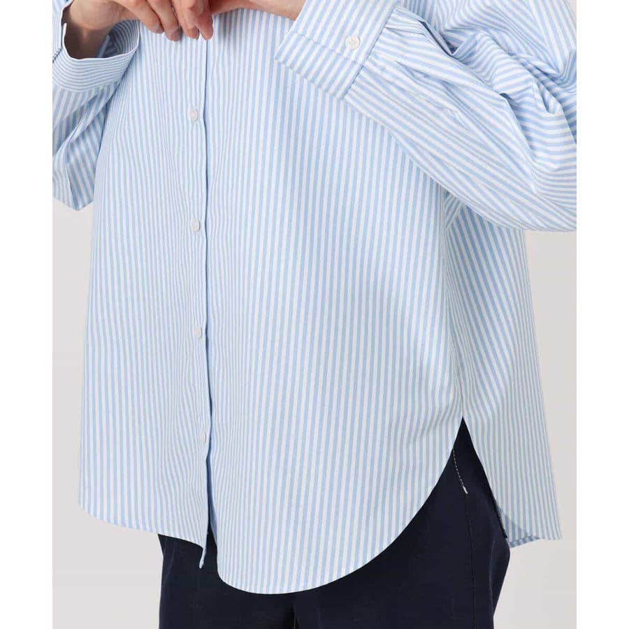 コットン混ベーシックシャツ(ストライプ)/接触冷感/防シワ/洗える