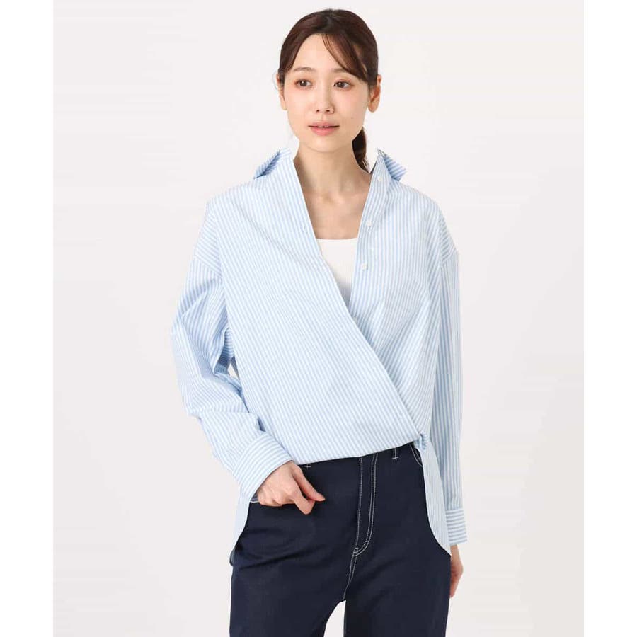 使い勝手の良いベーシックなシャツ。そのままの着用はもちろん、フロント一番下に釦ホールがあるので、前立て裏の釦に留めていただくと、タックアップ風に。両脇内側についた釦を留めていただくとカシュクール風にアレンジも可能と3wayで着用可能。カシュクールの場合は、襟を抜いての着こなしがおすすめです。